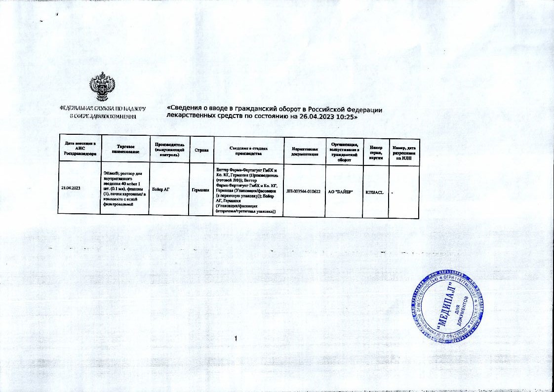 Эйлеа 40 мг/мл 1 фл раствор для внутриглазного введения