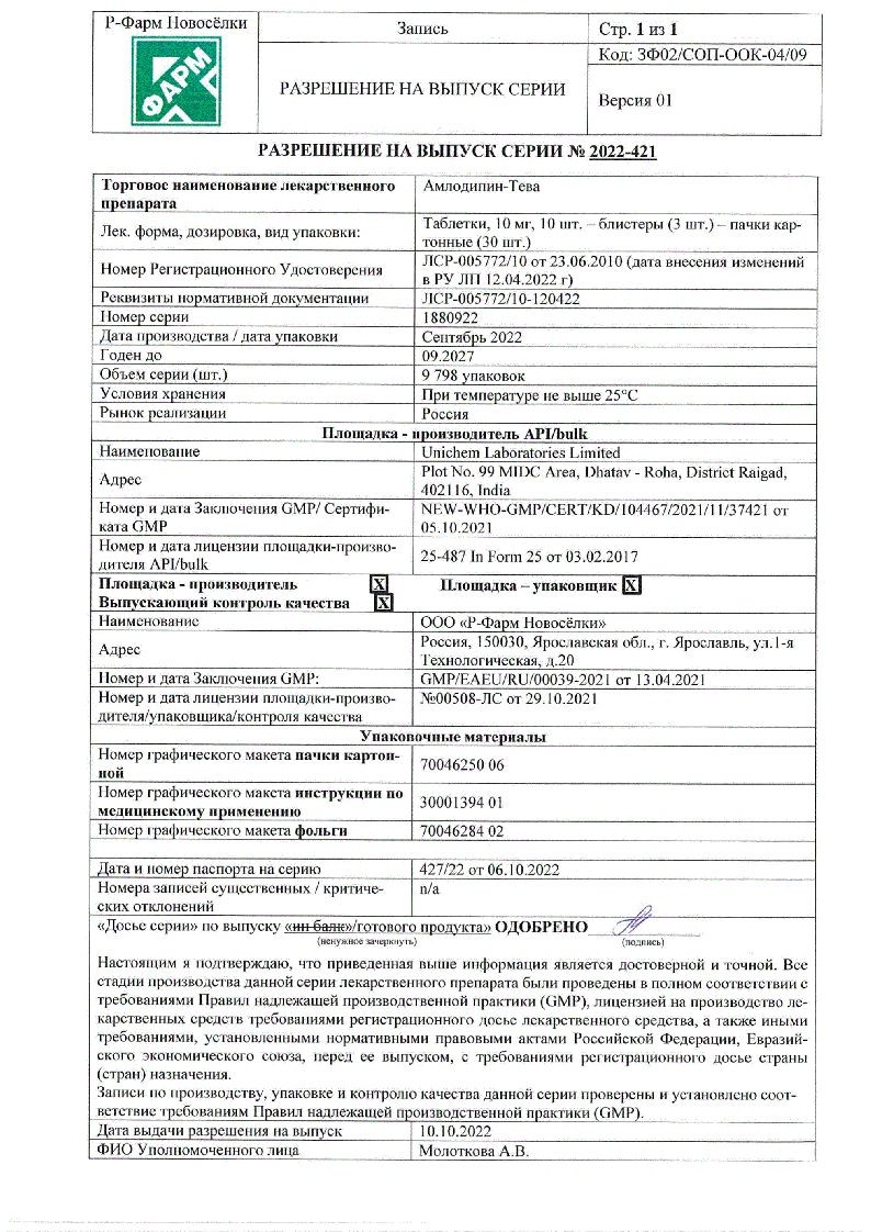 Вамлосет 10 мг + 160 мг 30 шт таблетки покрытые пленочной оболочкой