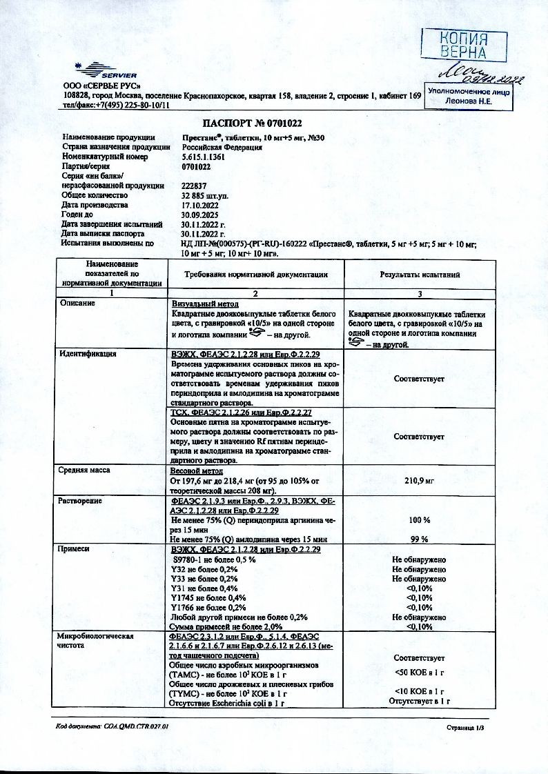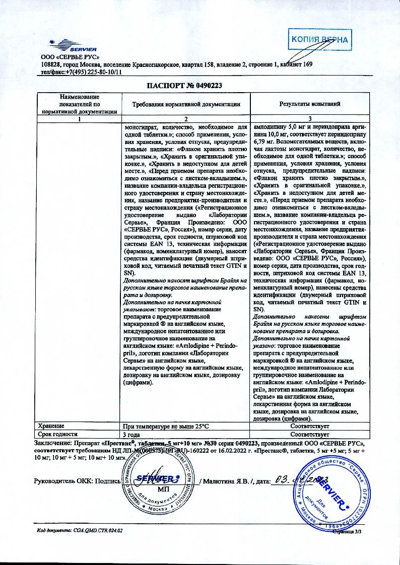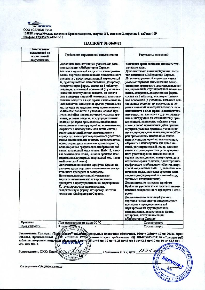 Трипликсам 5 мг + 2,5 мг + 10 мг 30 шт таблетки покрытые пленочной оболочкой