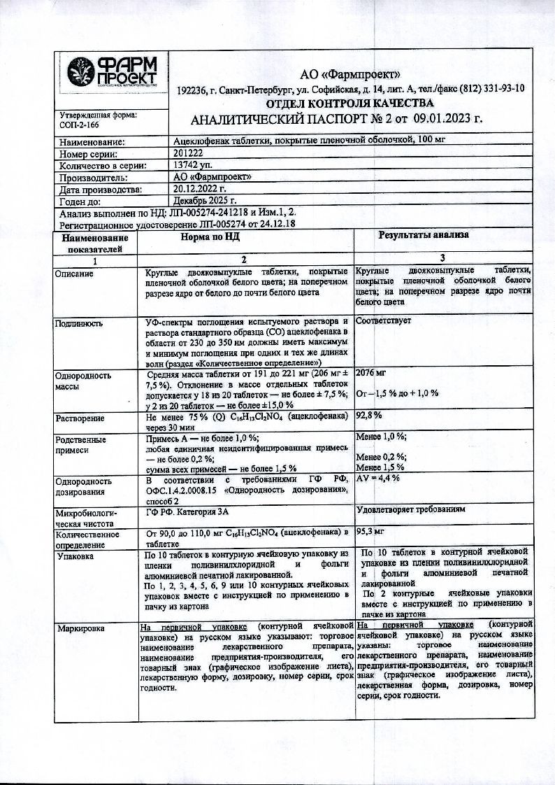 В корзинуАцеклофенак 100 мг 20 шт таблетки покрытые пленочной оболочкой