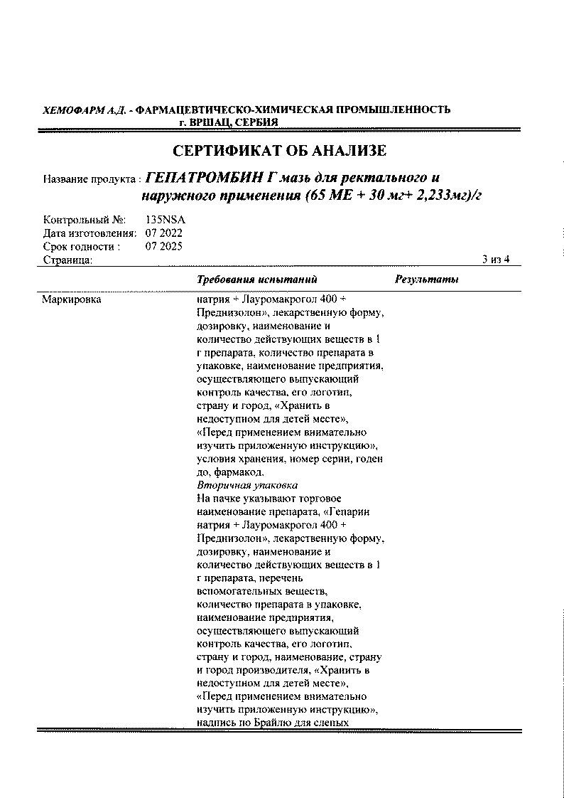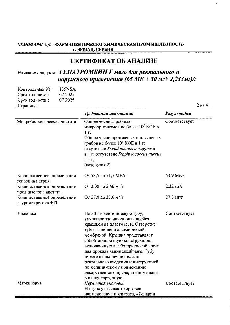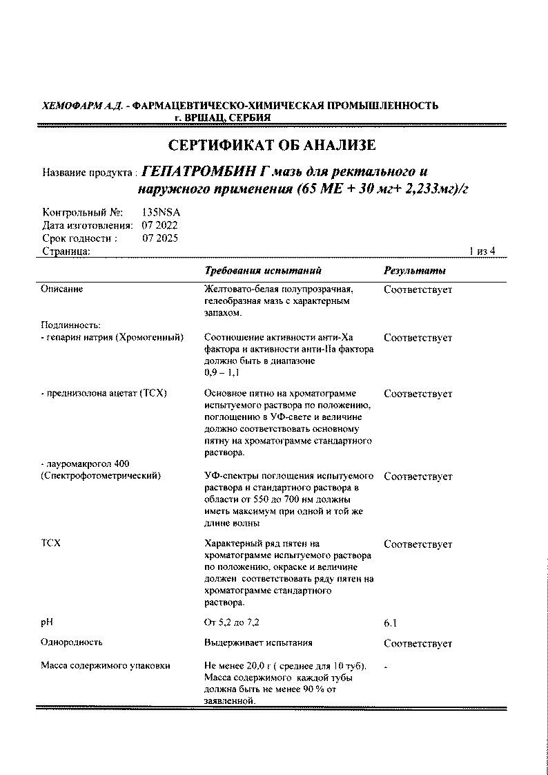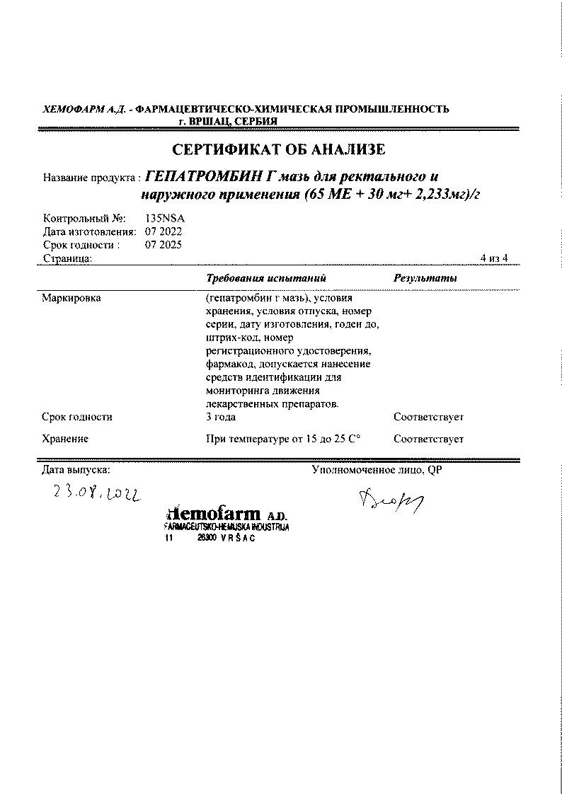 Гепатромбин 4 мг + 3 мг 300 МЕ 40 г мазь для наружного применения туба