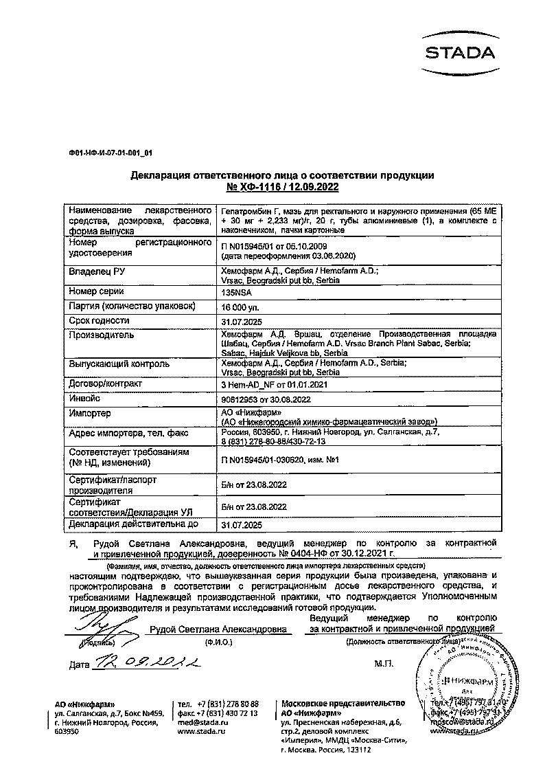 Гепатромбин Г 20 г мазь для наружного и ректального применения + комплект с наконечником