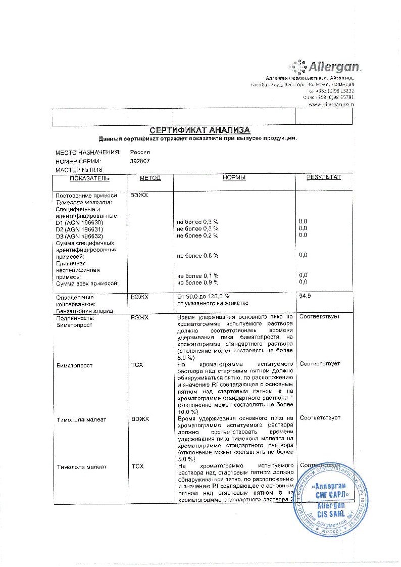 Бимокко-СЗ 0,3 мг/мл + 5 мг/мл фл 2,5 мл 1 шт капли глазные