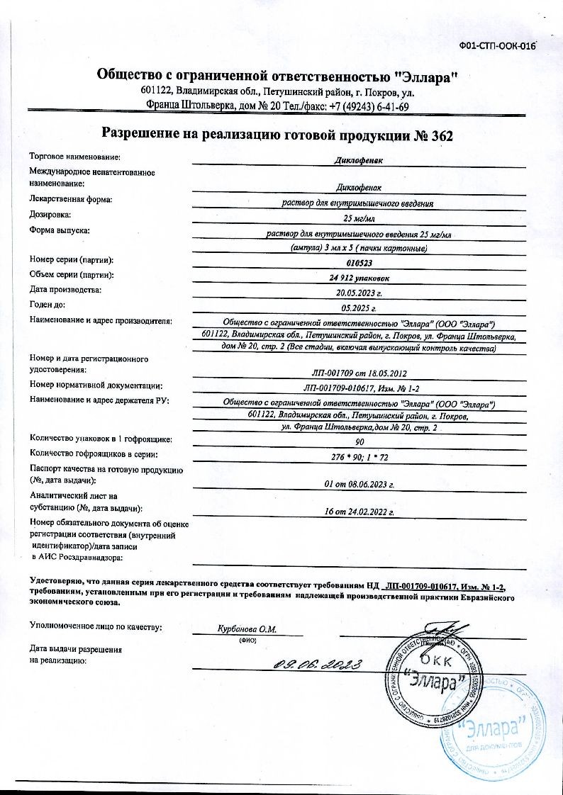 В корзинуДиклофенак 75 мг/3 мл 5 шт раствор для внутримышечного введения ампулы