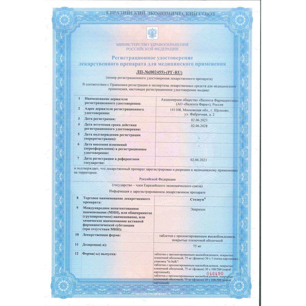 Стезиум 75 мг 30 шт таблетки с пролонгированным высвобождением покрытые пленочной оболочкой