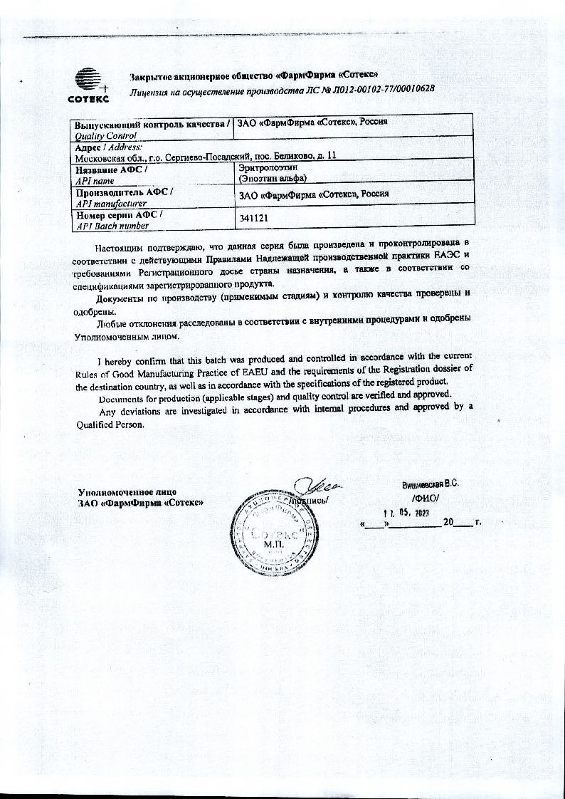 Эпокрин 2000 МЕ 1 мл 10 шт раствор для внутривенного и подкожного введения ампулы