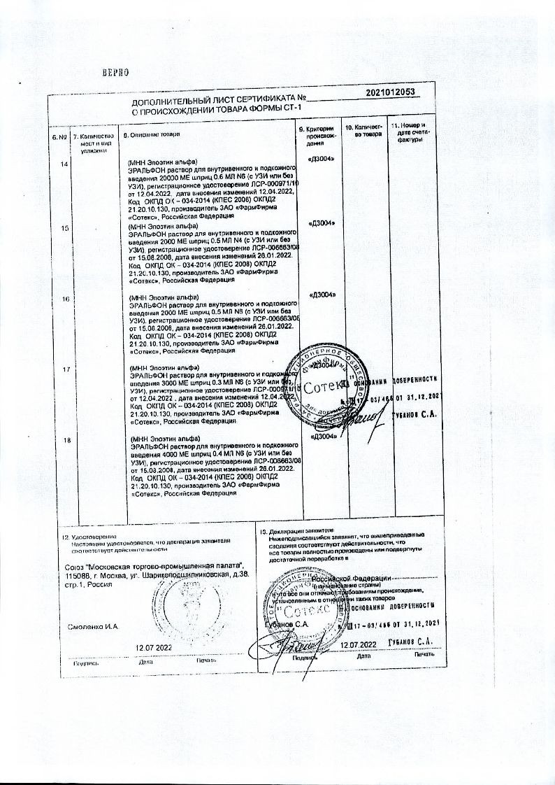 Эральфон 1000 МЕ/0,3 мл 6 шт раствор для внутривенного и подкожного введения шприц