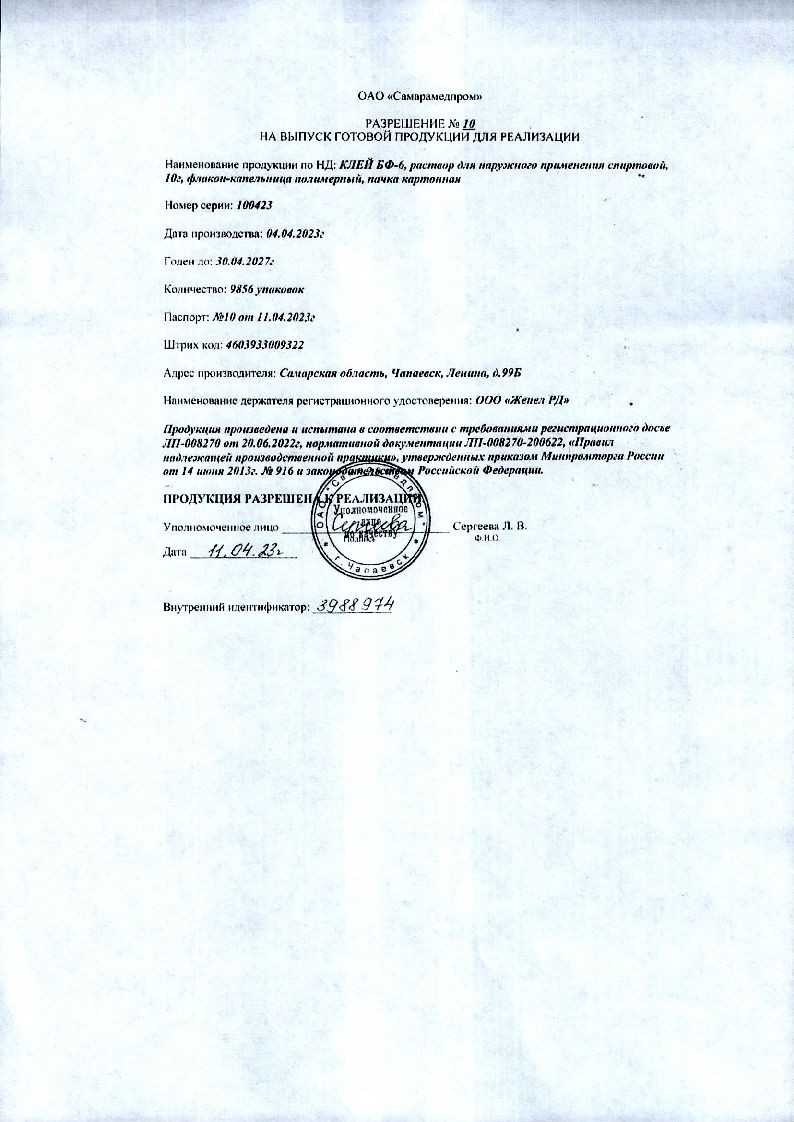 Клей Медицинский БФ-6 10 г раствор для наружного применения спиртовой туба