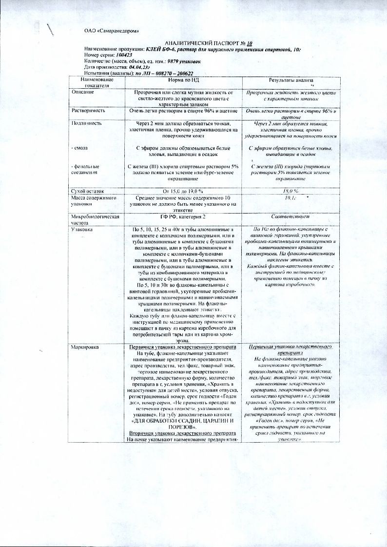 Клей БФ-6 15 г раствор для наружного применения спиртовой медицинский