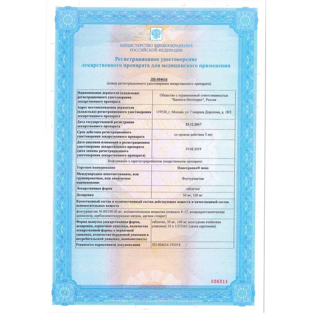 Купить: Нанотропил Ново 100 мг 10 шт таблетки