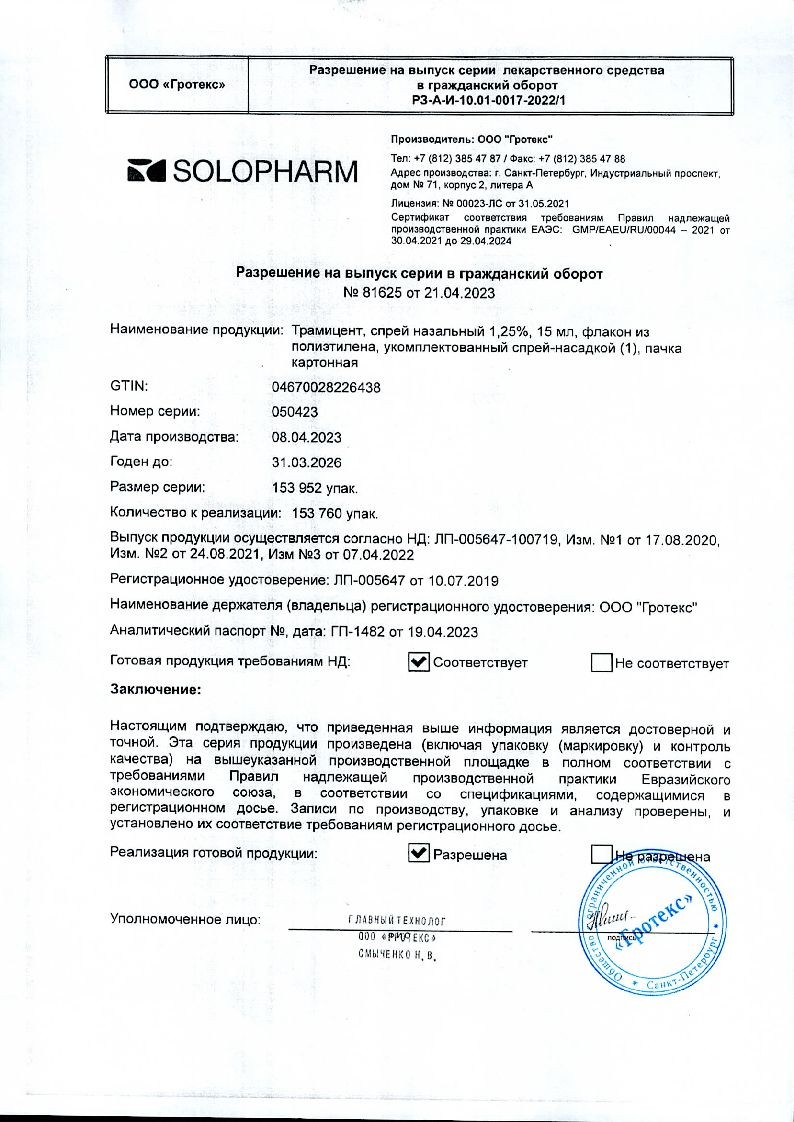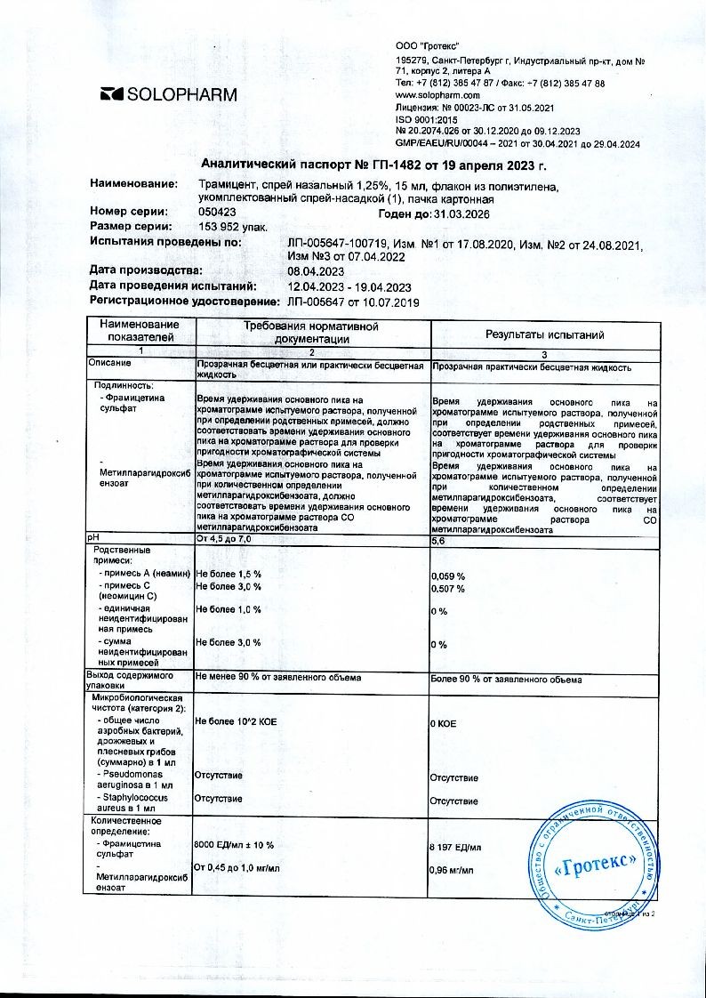 Купить: Трамицент 1,25% 15 мл спрей назальный
