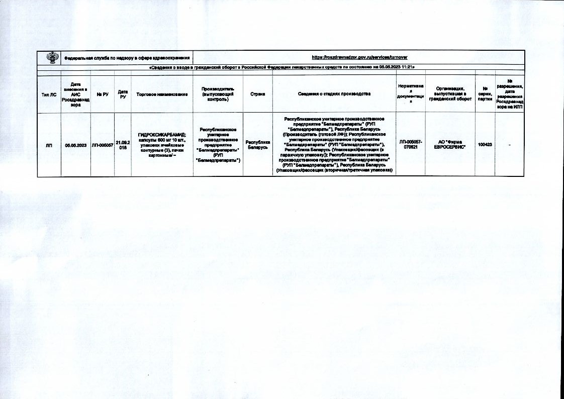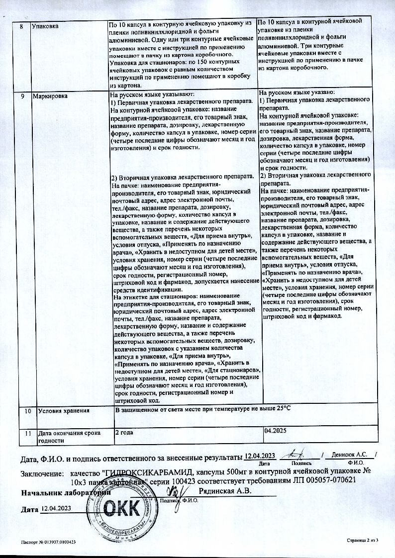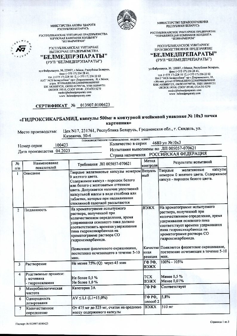 Гидроксикарбамид 500 мг 30 шт капсулы