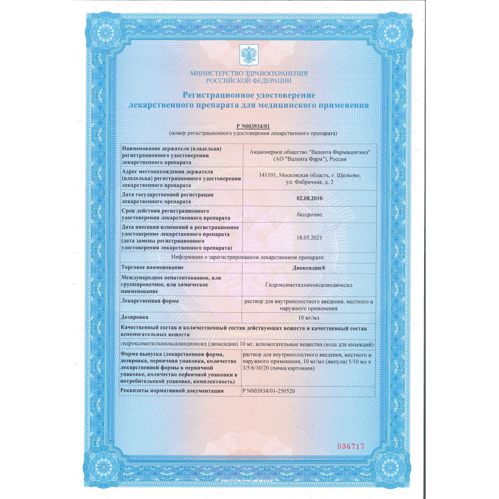 Диоксидин 0,5% 10 мл 10 шт раствор для инфузий и наружного применения