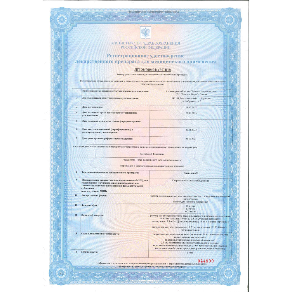 Диксин 10 мг/мл 10 мл 10 шт раствор для внутриполостного введения и наружного применения ампулы