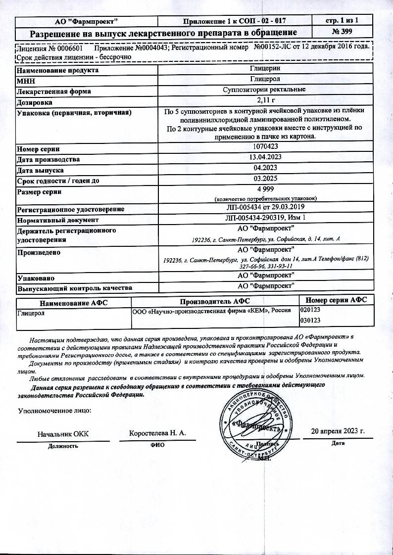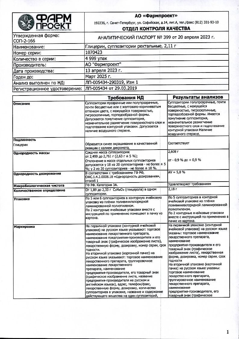 Глицерин 1,24 г 10 шт суппозитории ректальные для детей