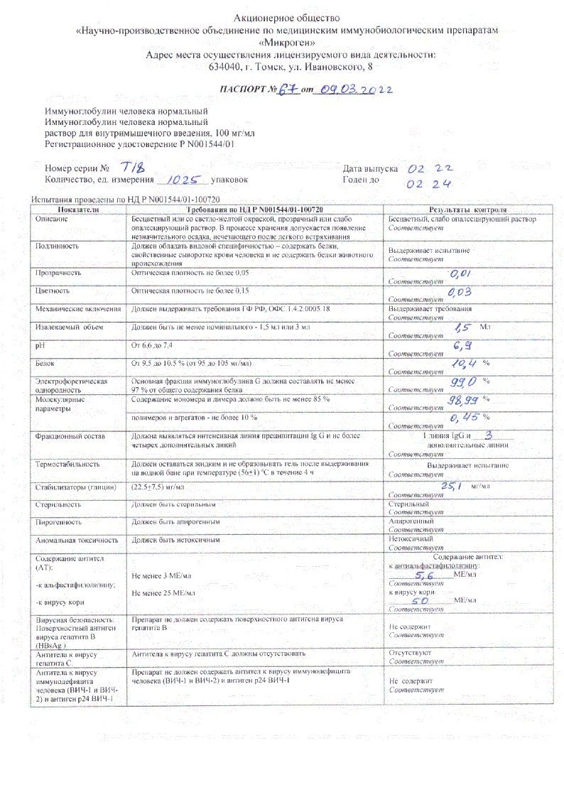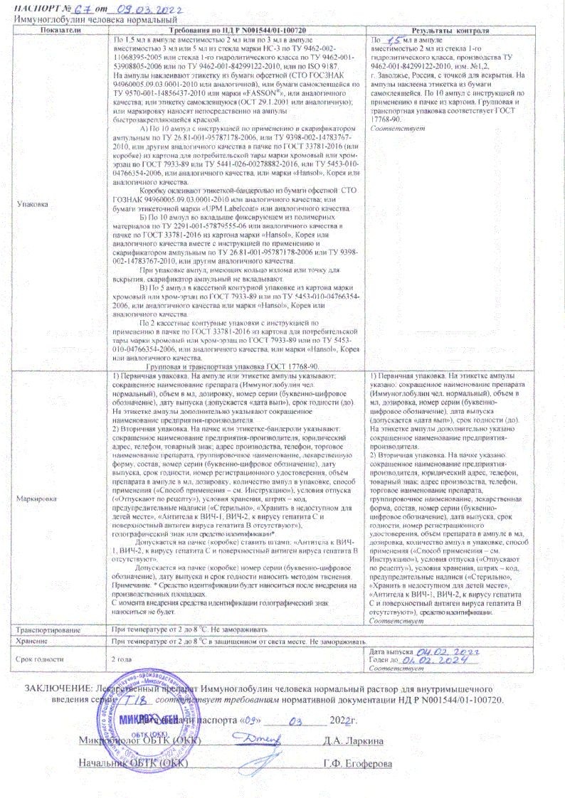 Иммуноглобулин Человека Нормальный 100 мг/мл 1,5 мл ампулы №10 раствор для внутримышечного введения