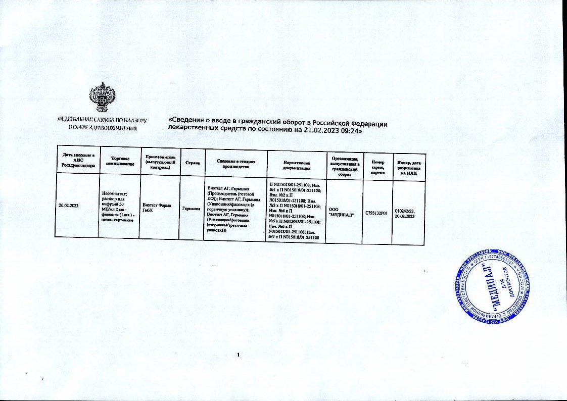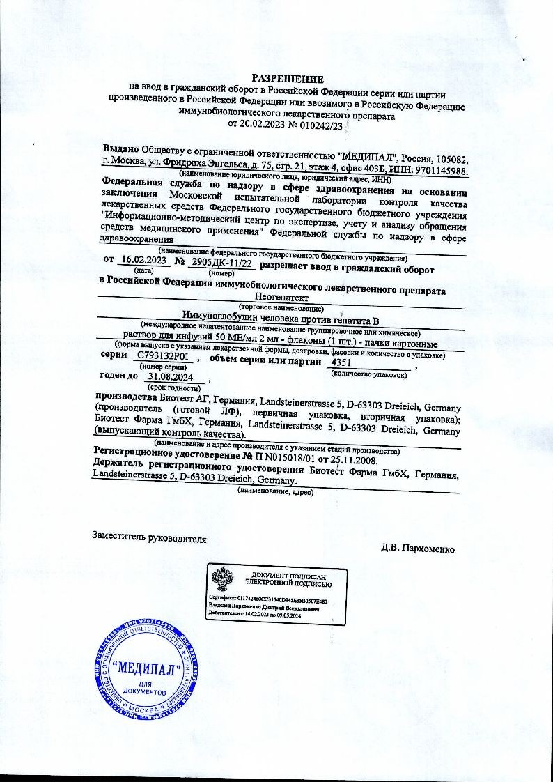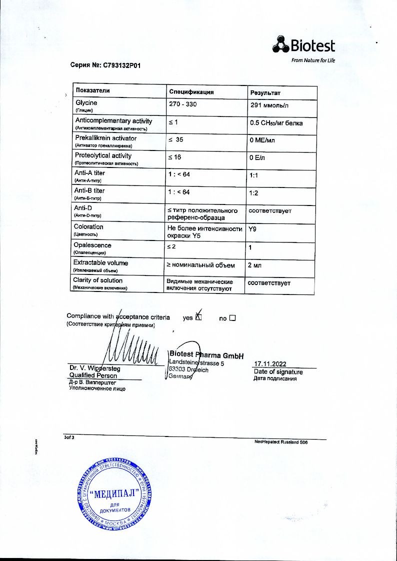 НеоЦитотект 100 Е/мл 10 мл раствор для инфузий флаконы