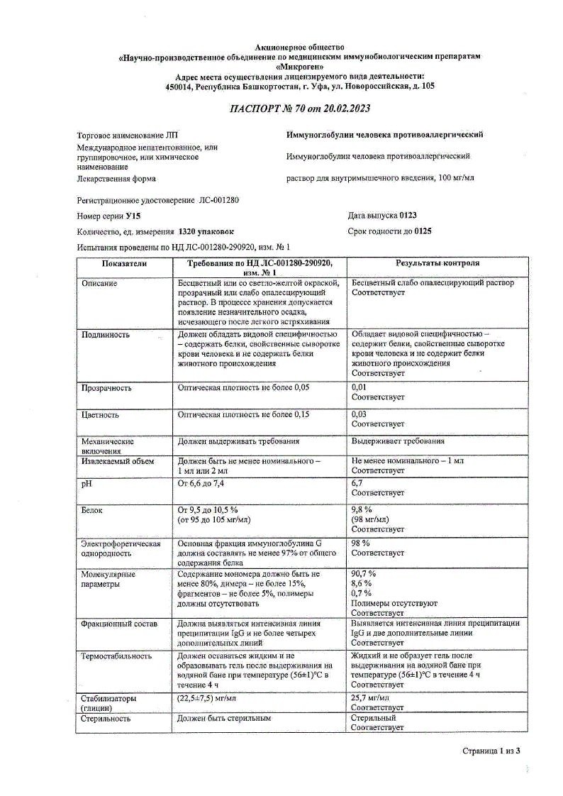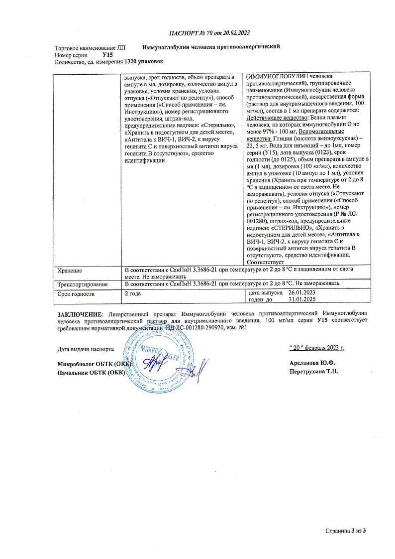 Иммуноглобулин Противоаллергический 1 мл 10 шт раствор для инъекций ампулы