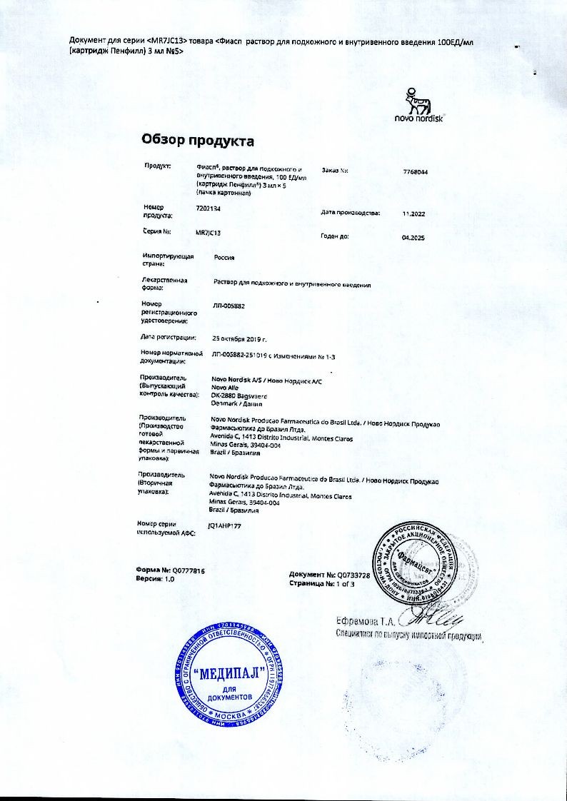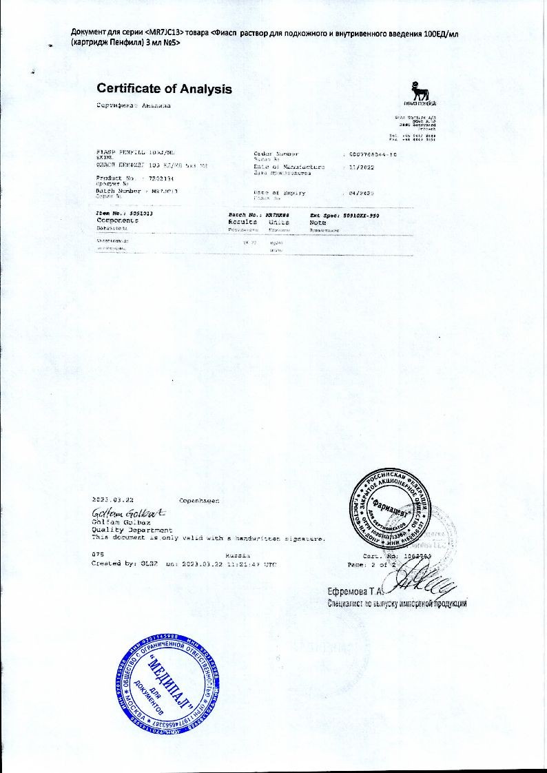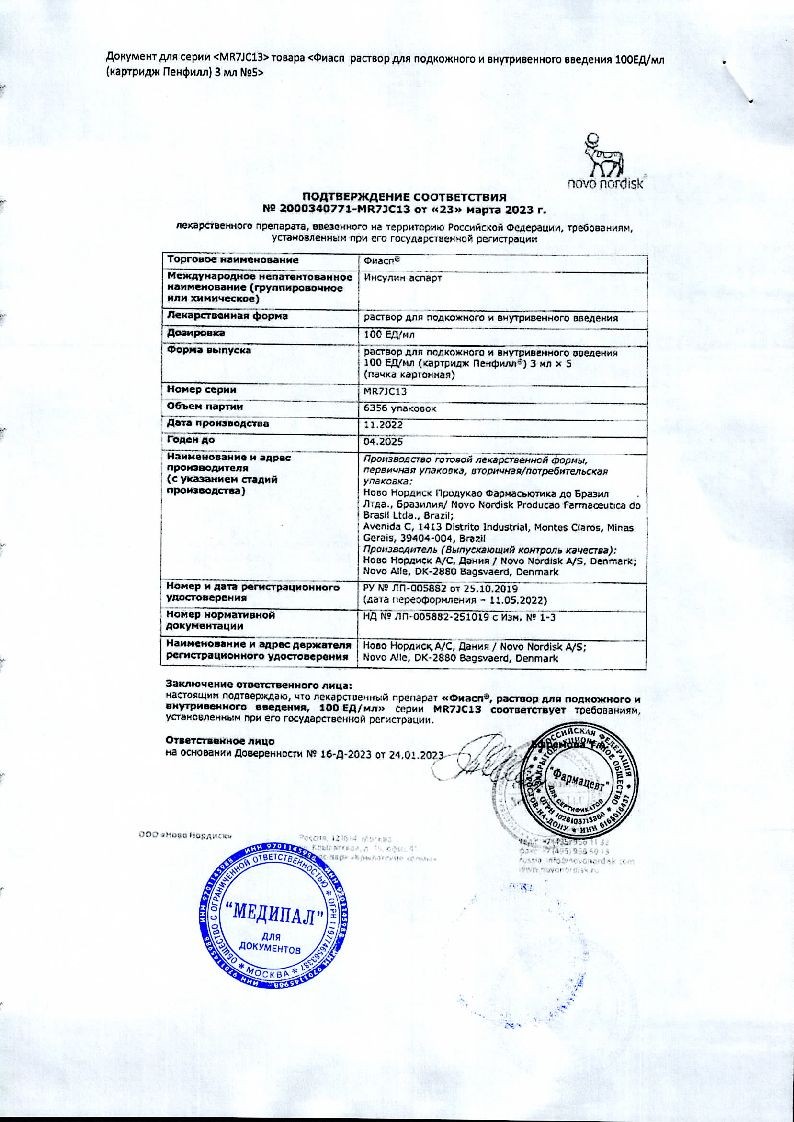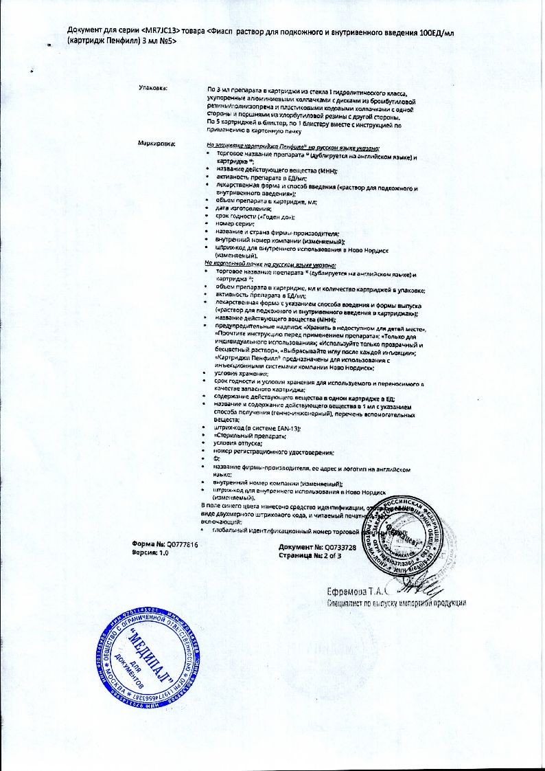 Фиасп 100 ЕД/мл 3 мл 5 шт раствор для внутривенного и подкожного введения картридж Пенфилл