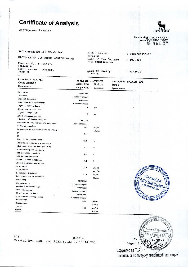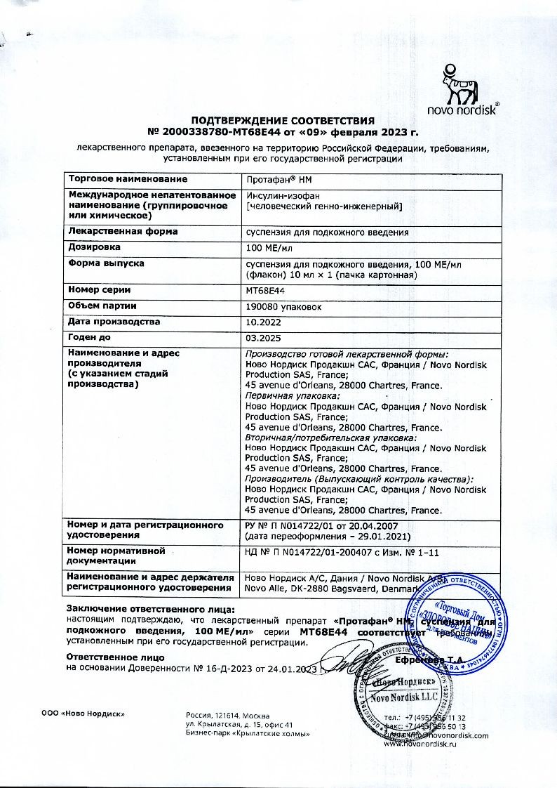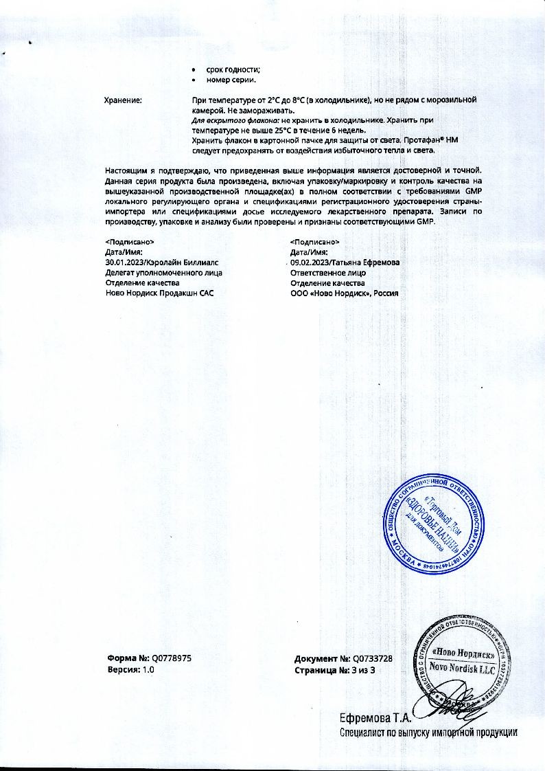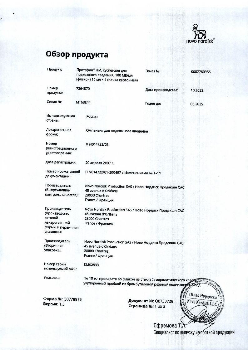 Протафан НМ 100 МЕ/мл 10 мл суспензия для подкожного введения
