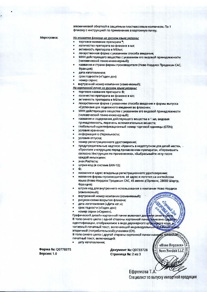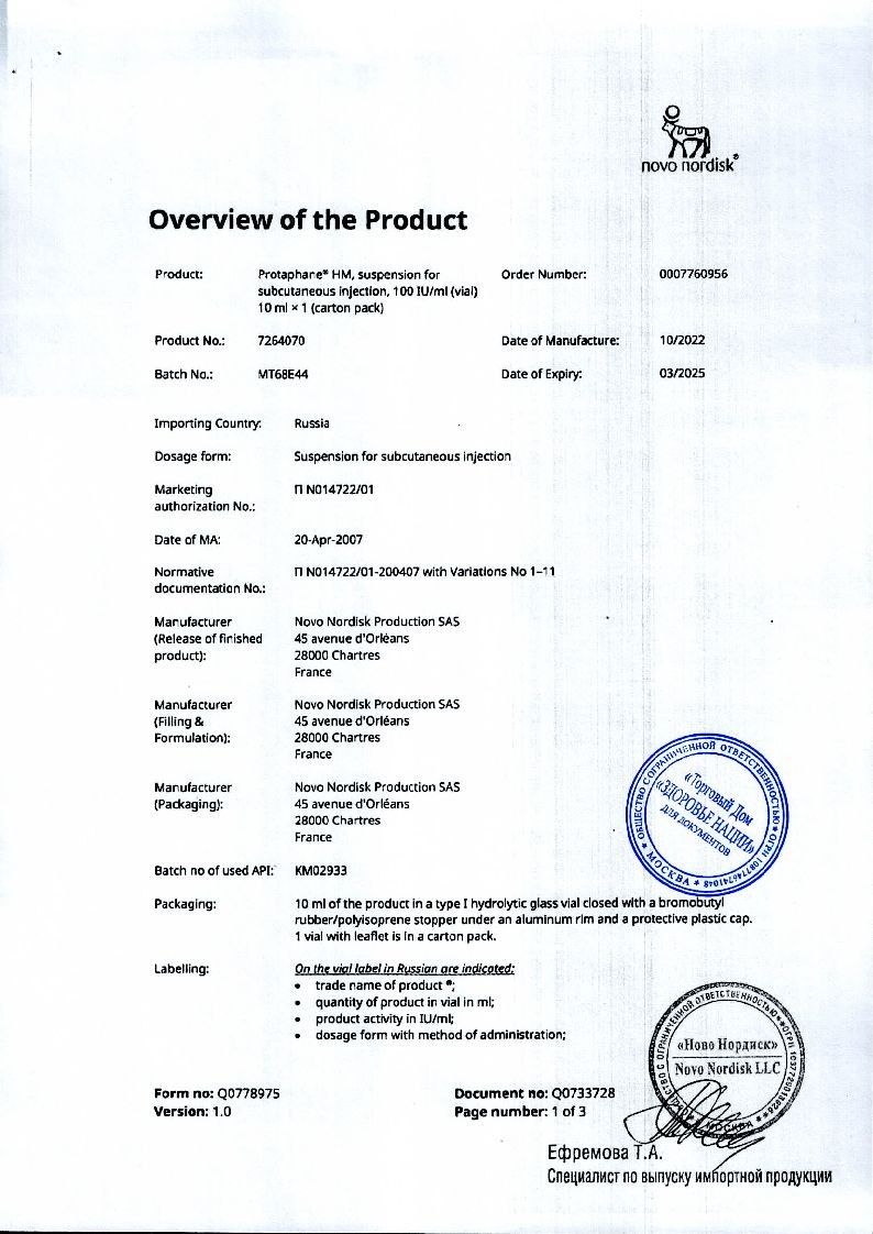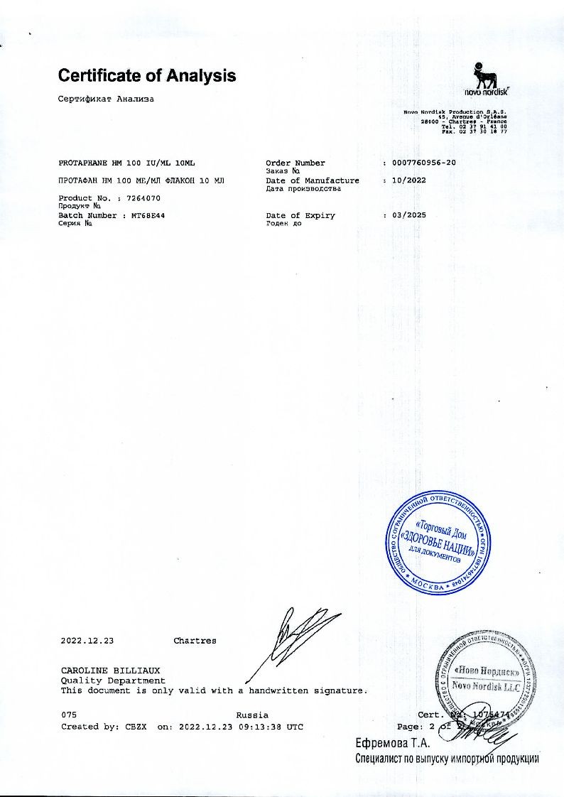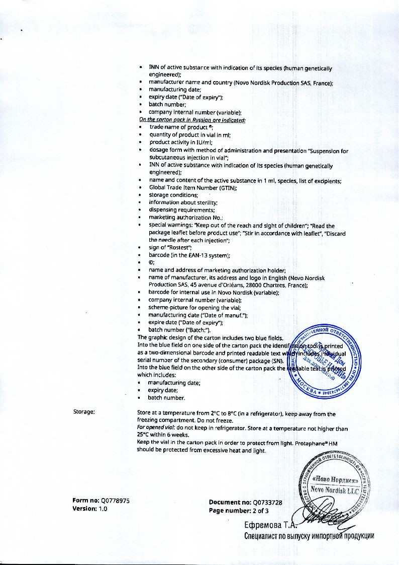 Протафан НМ 100 МЕ/мл 10 мл суспензия для подкожного введения