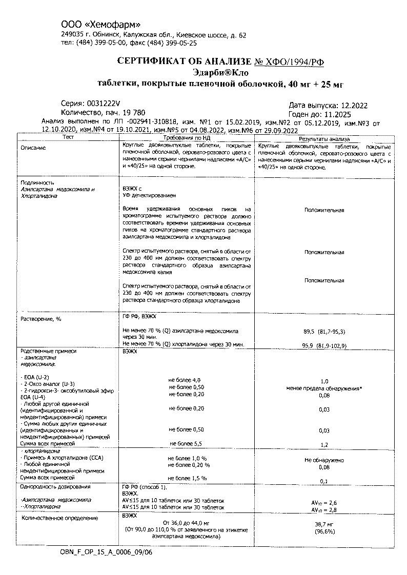 Эдарби Кло 40 мг + 25 мг 28 шт таблетки покрытые пленочной оболочкой