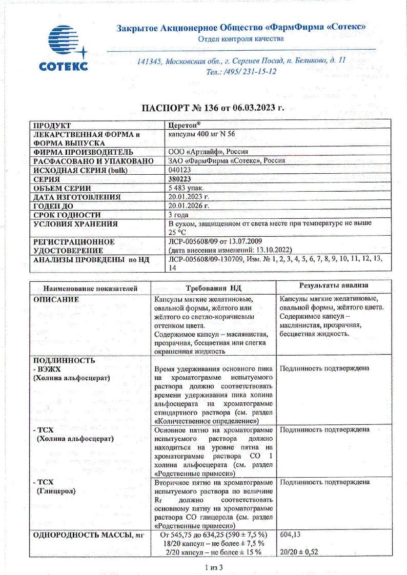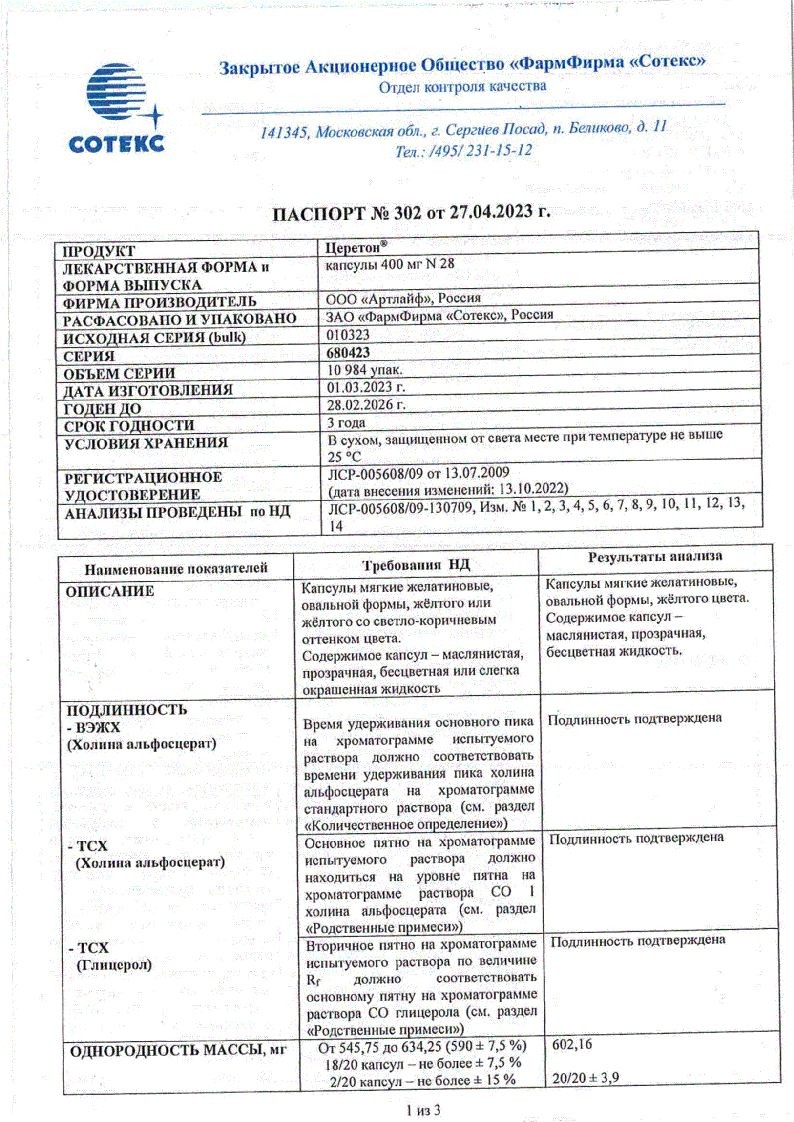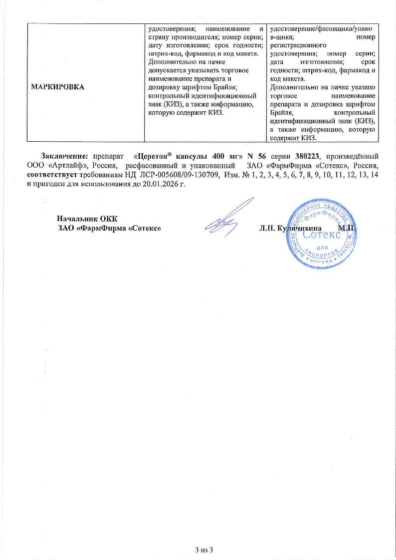 Церетон 120 мг/мл 30 мл раствор для приема внутрь в комплекте с пипеткой дозирующей и адаптером