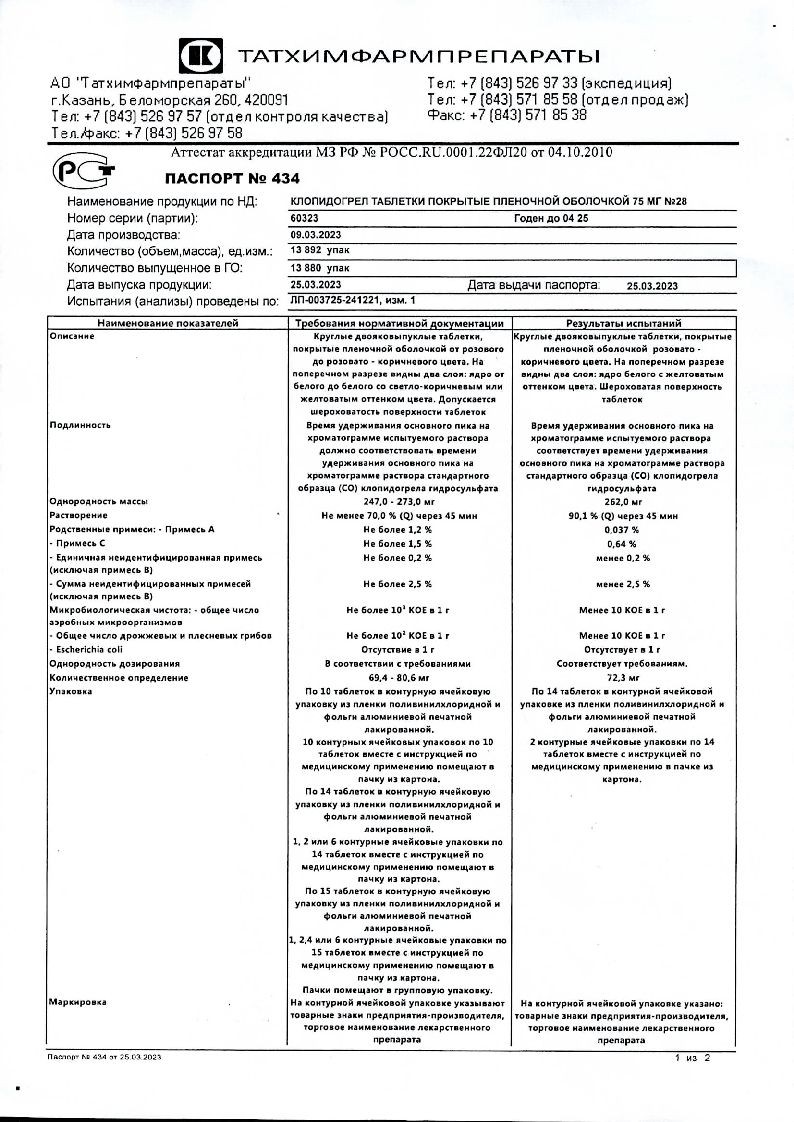 Клопидогрел-СЗ 75 мг 60 шт таблетки покрытые пленочной оболочкой