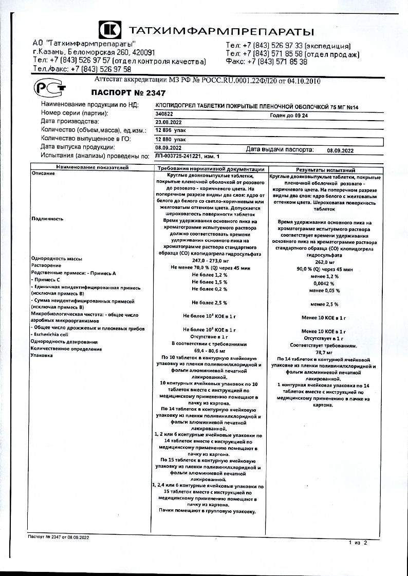 Клопидогрел 75 мг 14 шт таблетки покрытые пленочной оболочкой