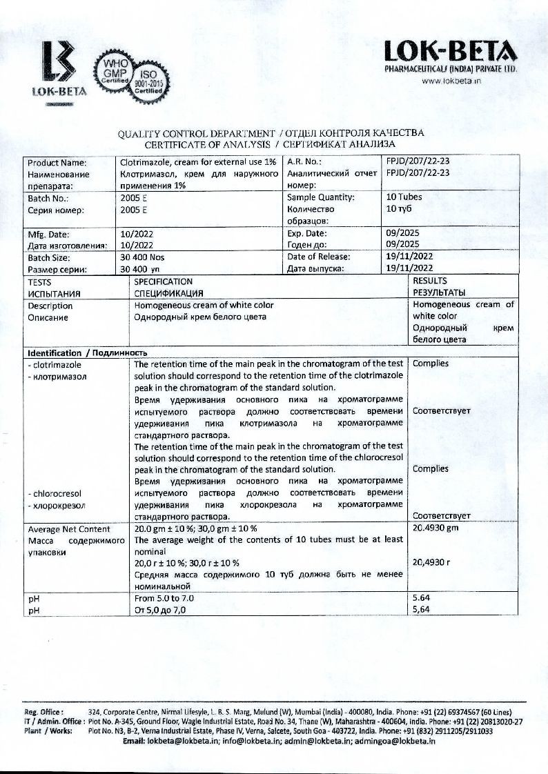 Клотримазол-Акрихин 1% 20 г мазь для наружного применения