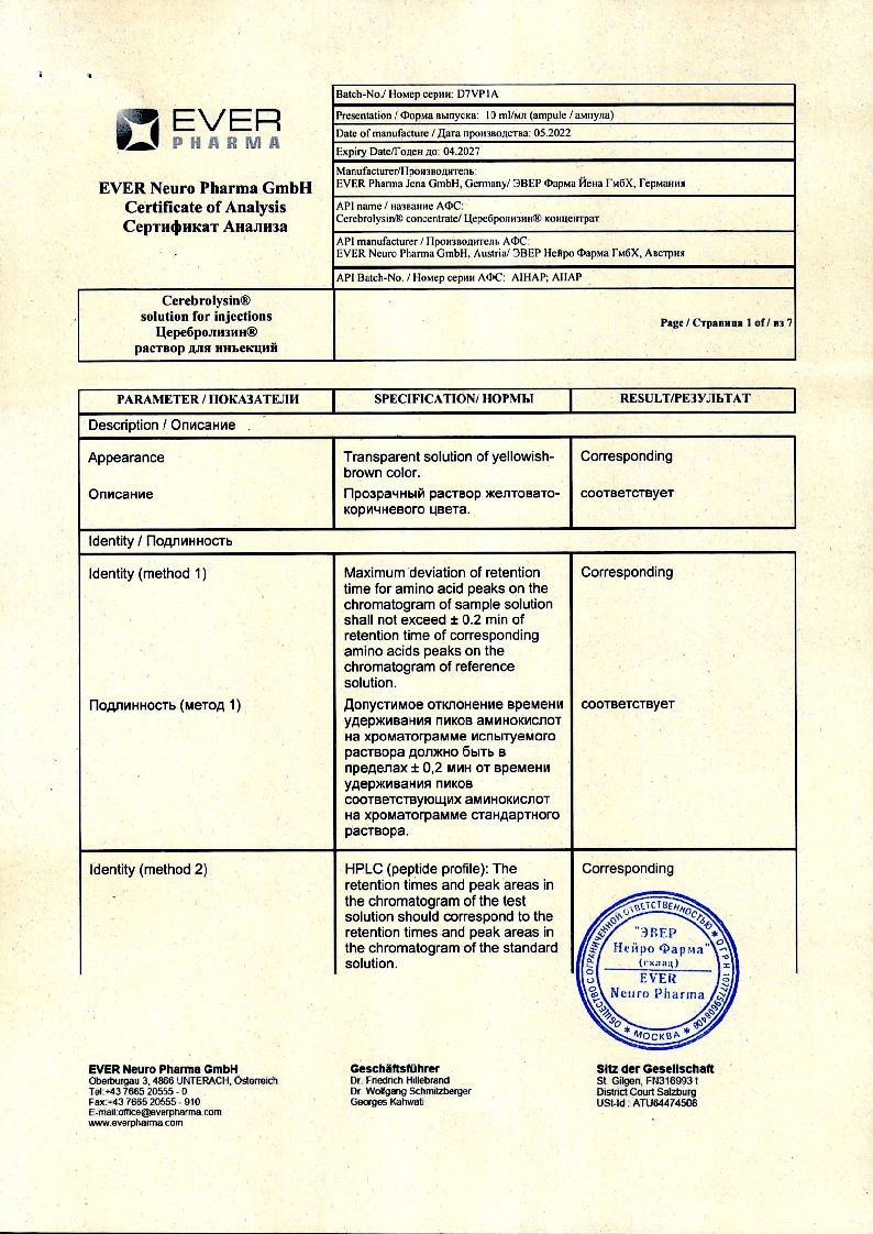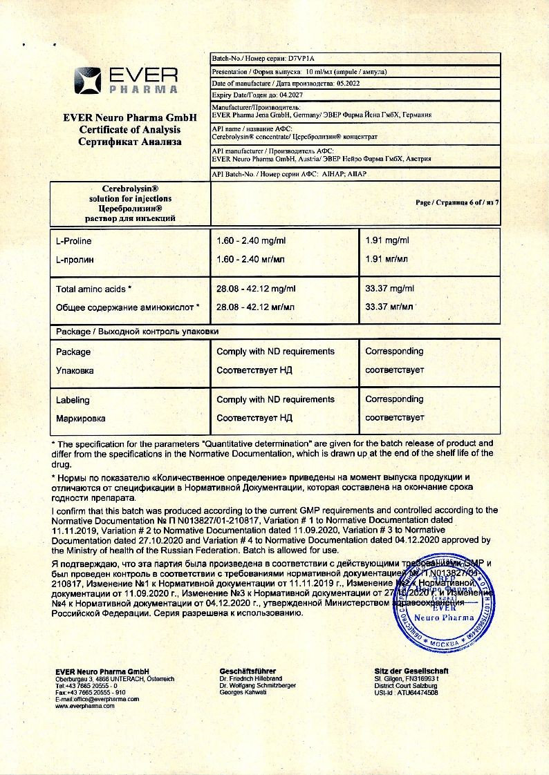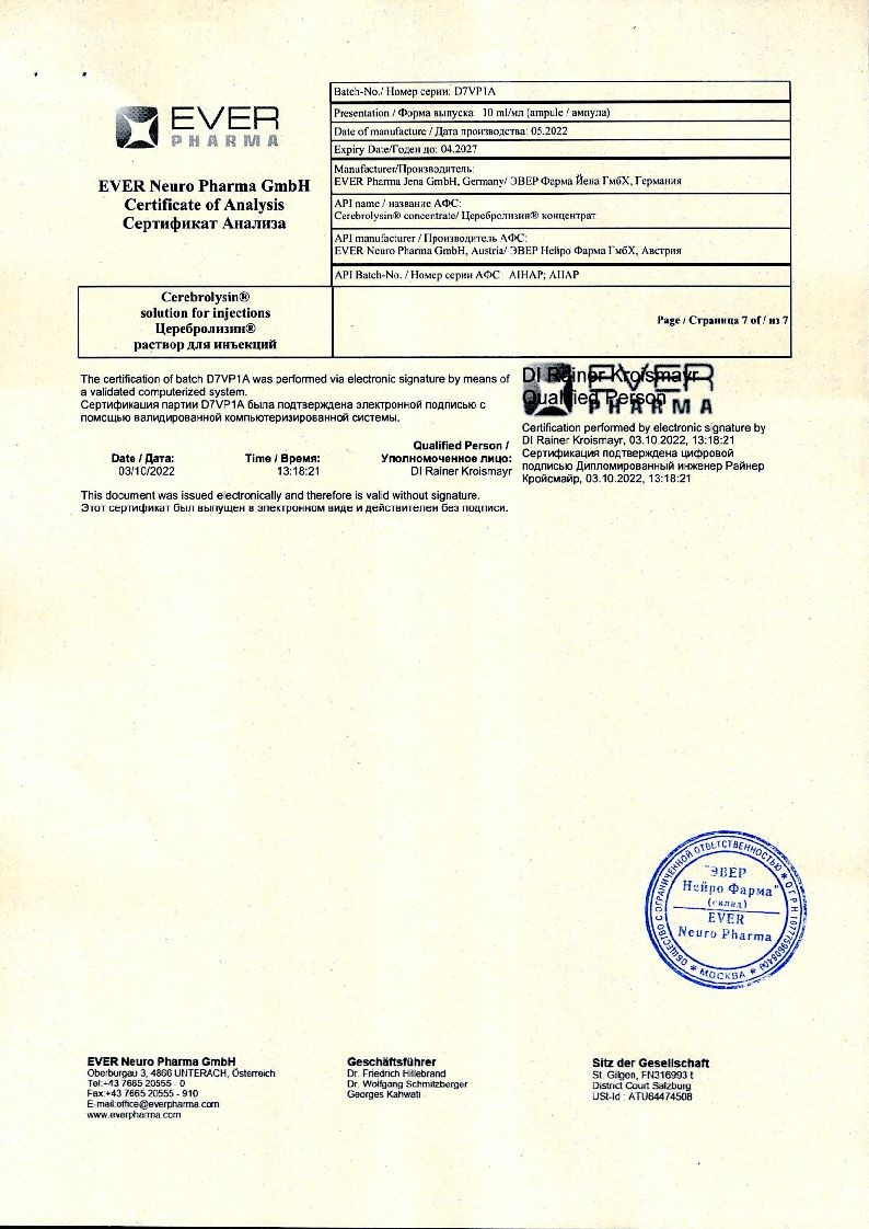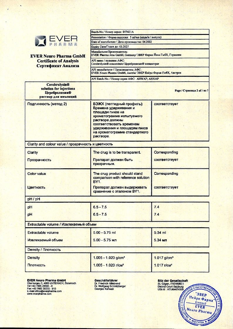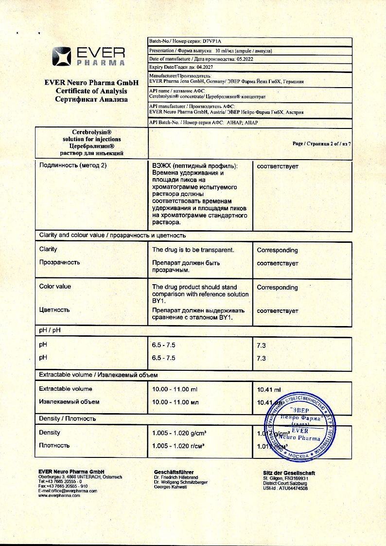 Церебролизин 2 мл 10 шт раствор для инъекций ампулы