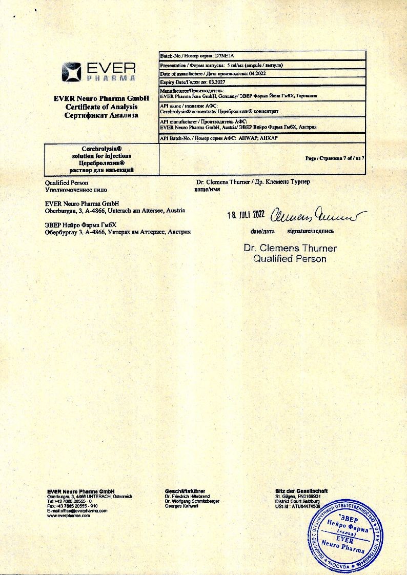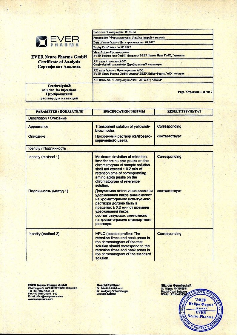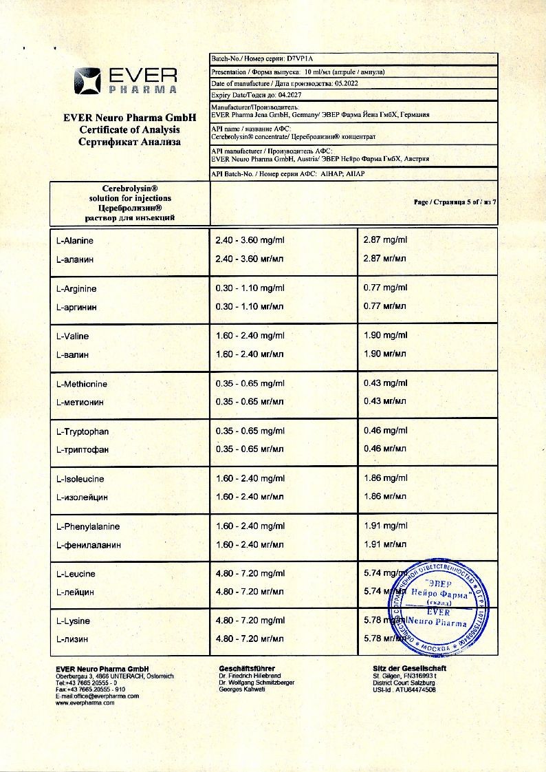 Церебролизин 20 мл 5 шт раствор для инъекций ампулы
