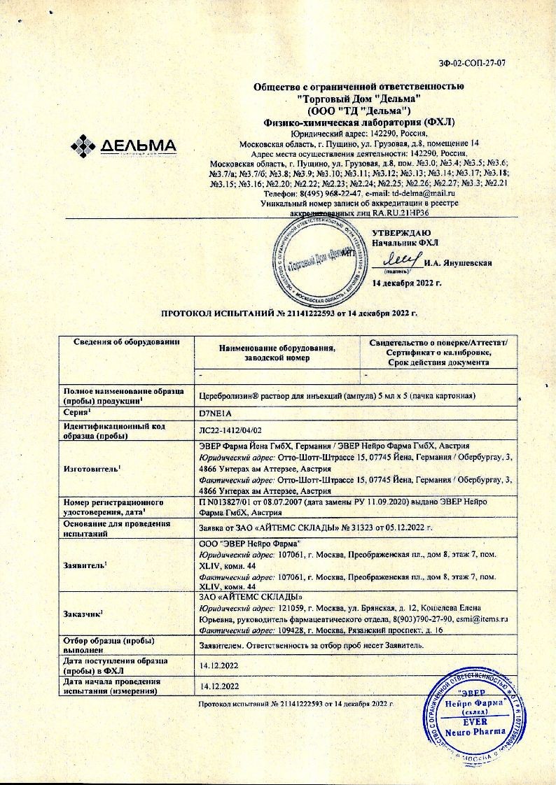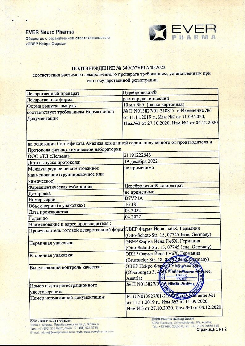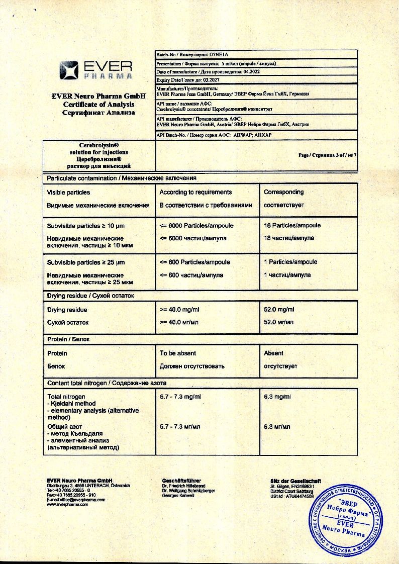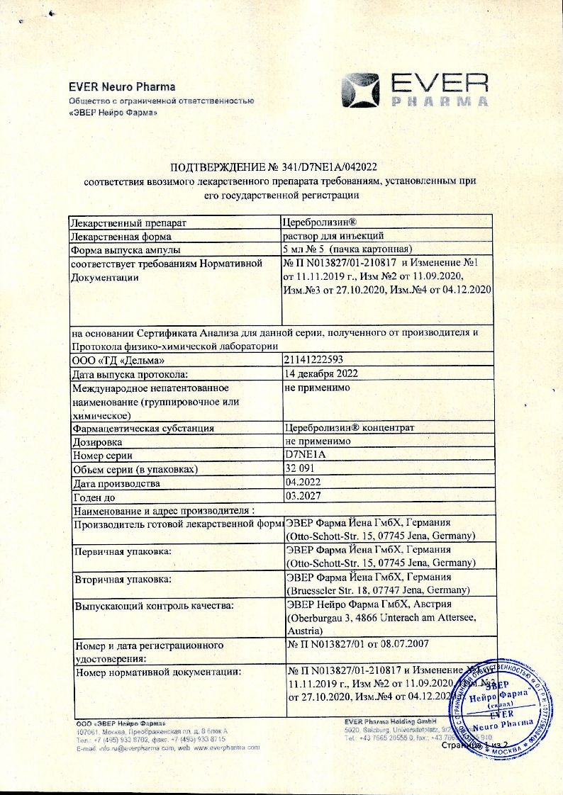 Церебролизин 20 мл 5 шт раствор для инъекций ампулы