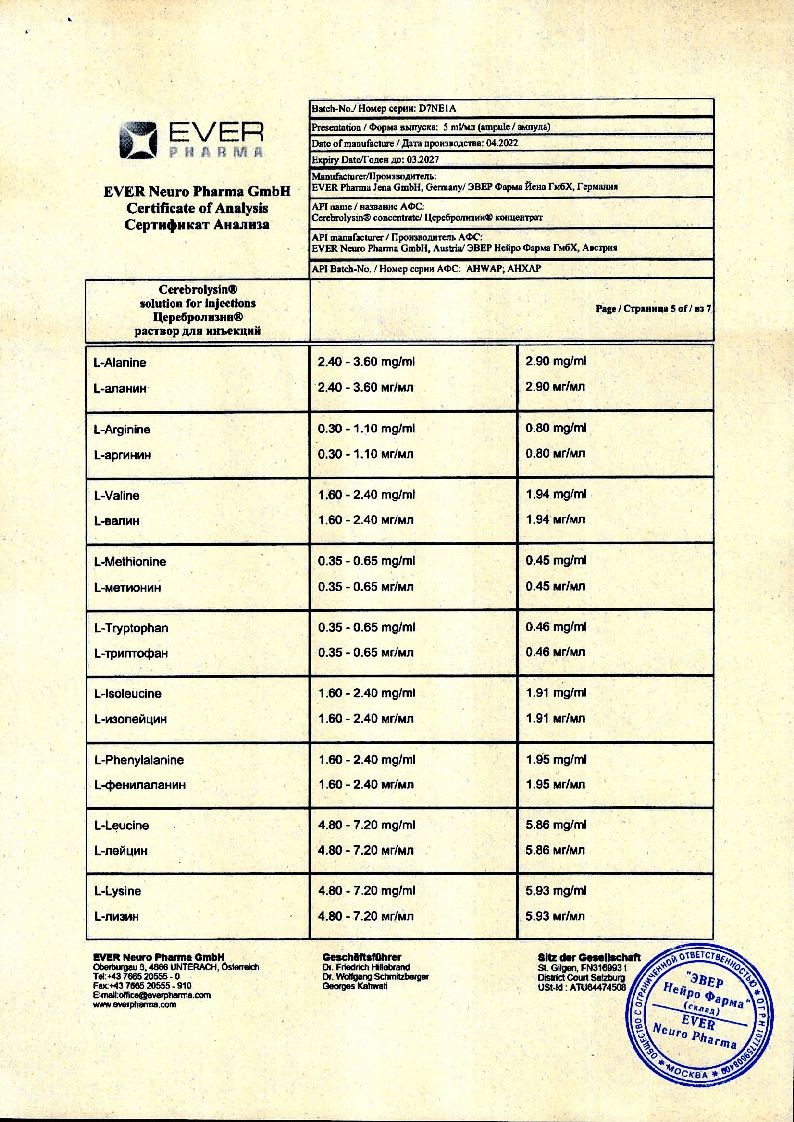 Церебролизин 5 мл 5 шт раствор для инъекций ампулы