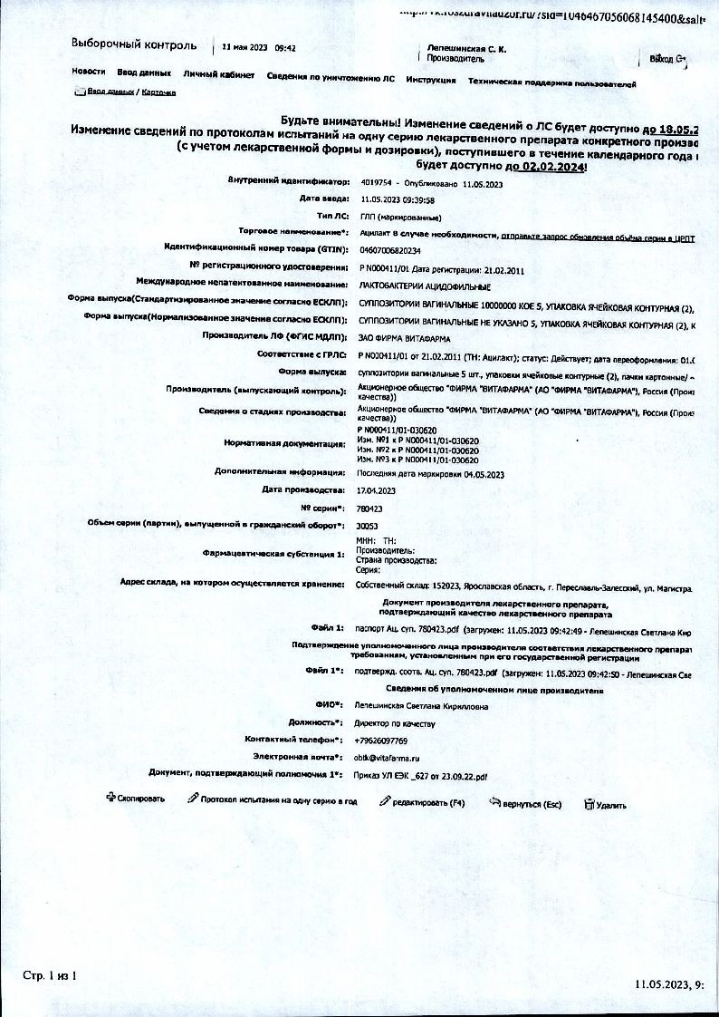 Лактобактерин 5 ДОЗ 10 шт лиофилизат для приготовления раствора для внутреннего и местного применения