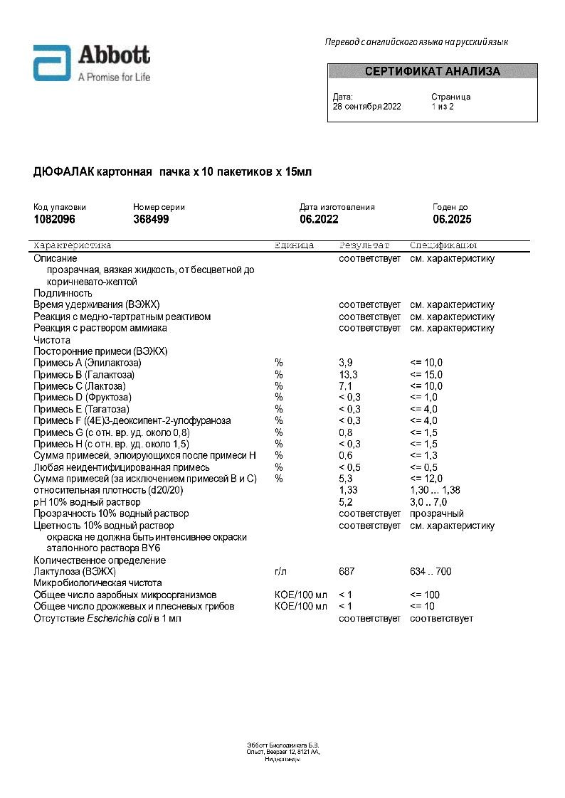 Купить: Дюфалак 15 мл 10 шт сироп пакетики