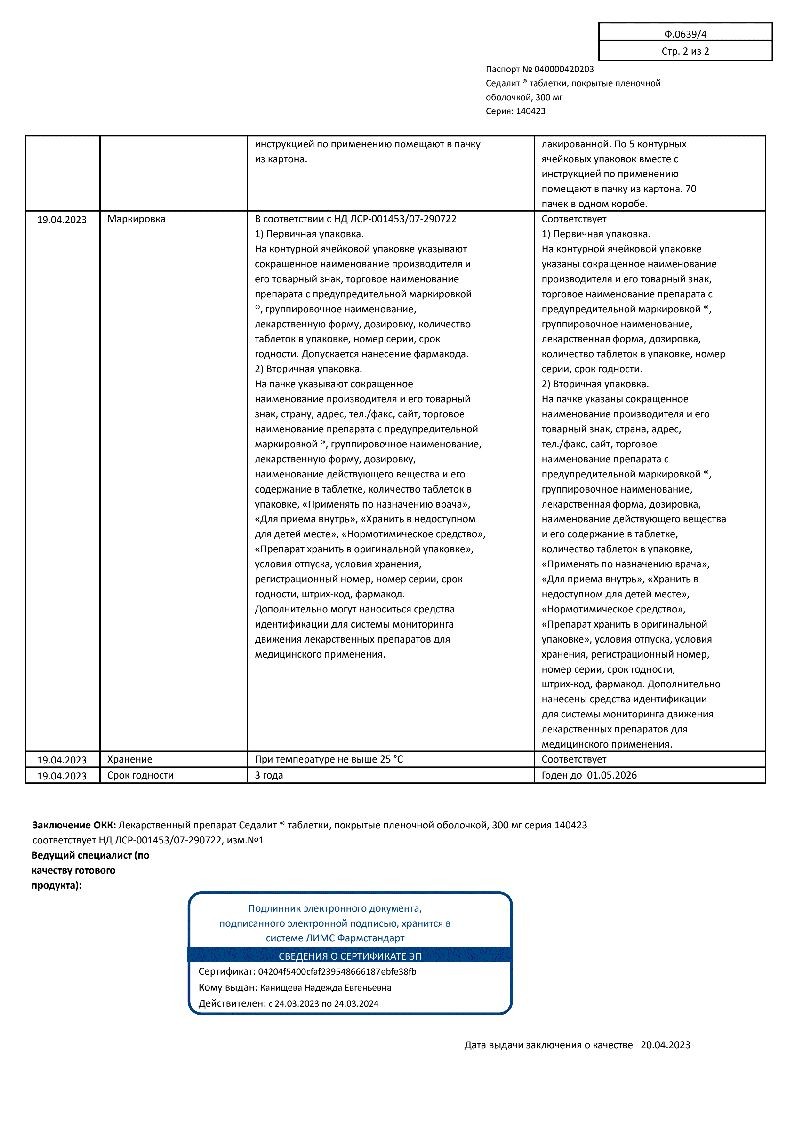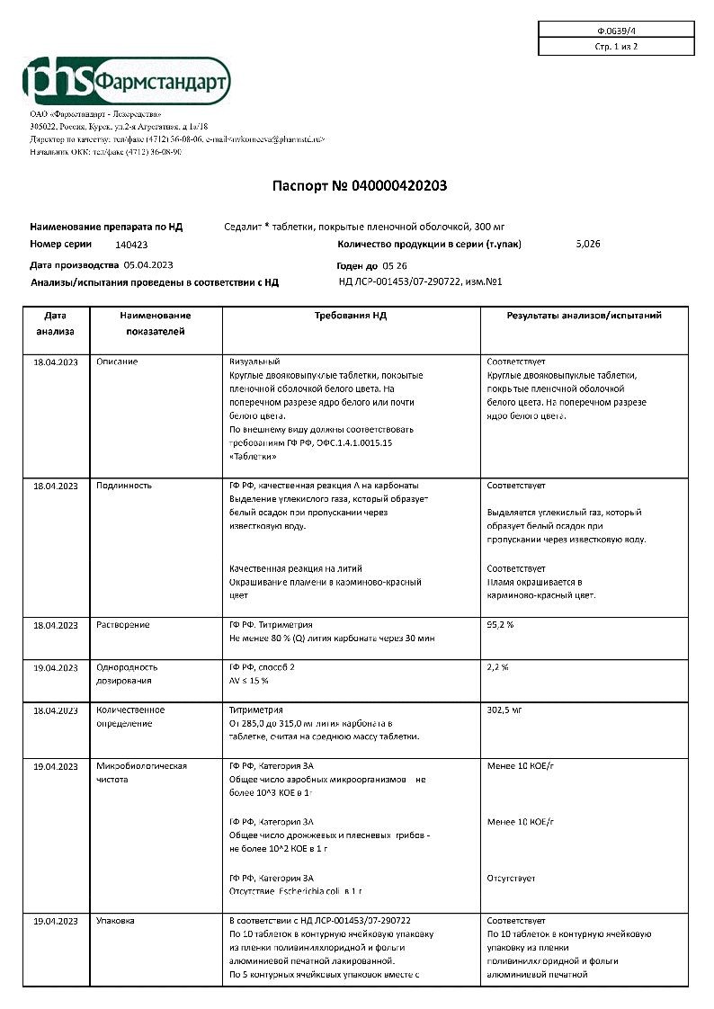 Седалит 300 мг 50 шт таблетки покрытые пленочной оболочкой