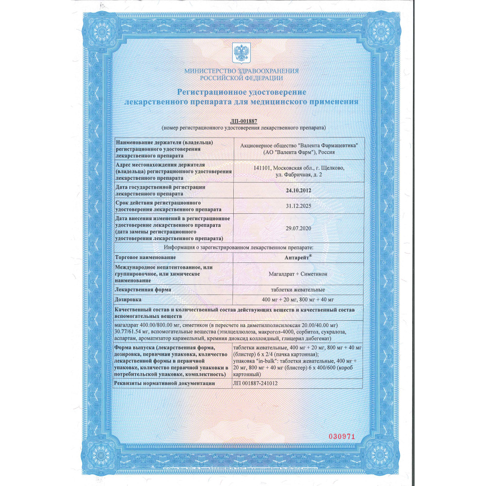 Антарейт 800 мг/40 мг 12 шт таблетки жевательные