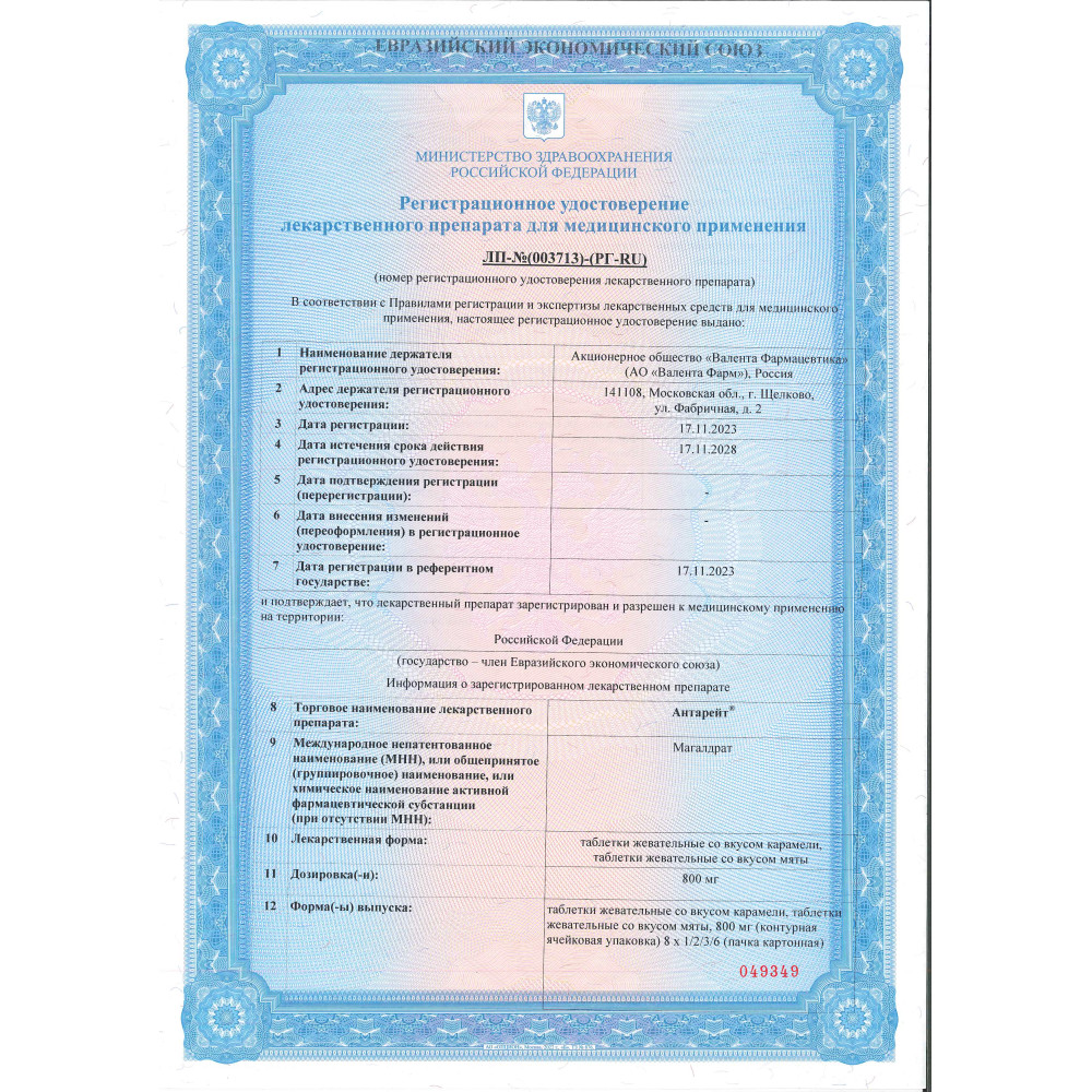 Антарейт 800 мг 24 шт таблетки жевательные со вкусом мяты