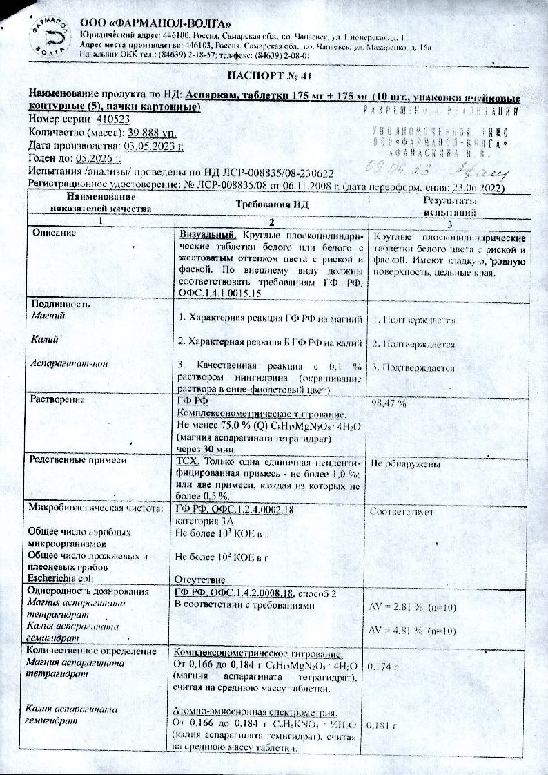 Аспаркам-L 5 мл 10 шт раствор для внутривенного введения