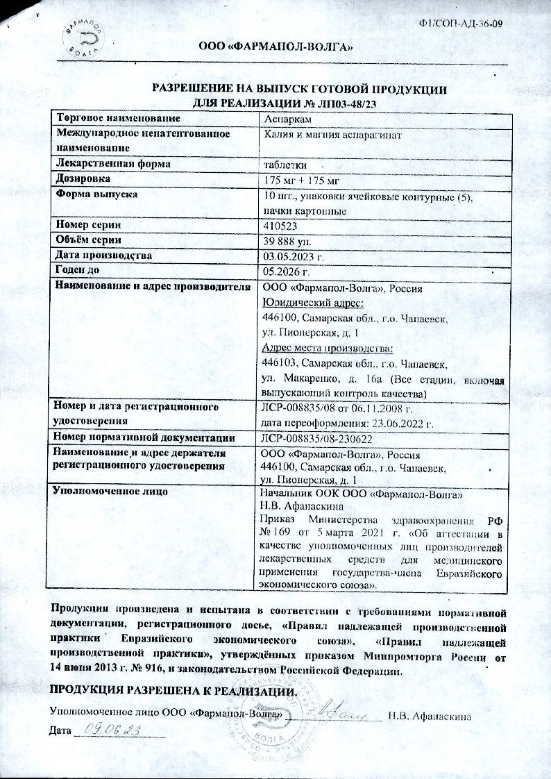Аспаркам L 10 мл 10 шт раствор для внутривенного введения