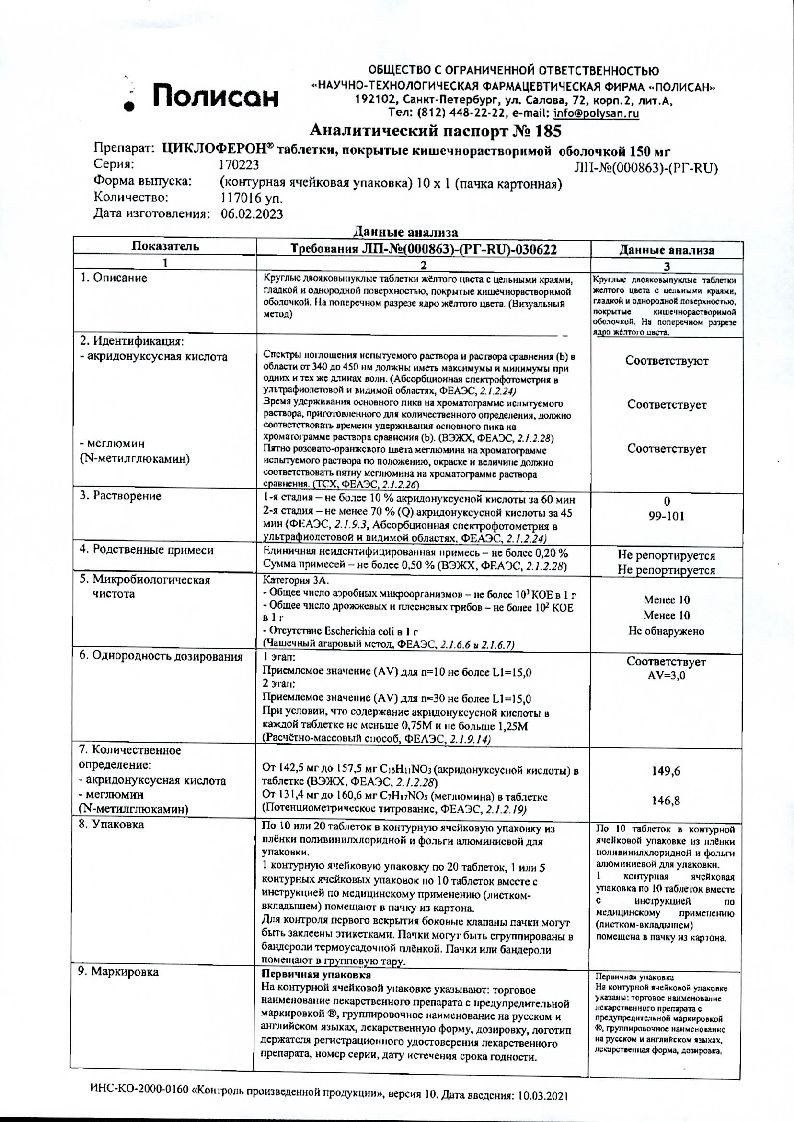 Циклоферон 150 мг 20 шт таблетки покрытые кишечнорастворимой оболочкой