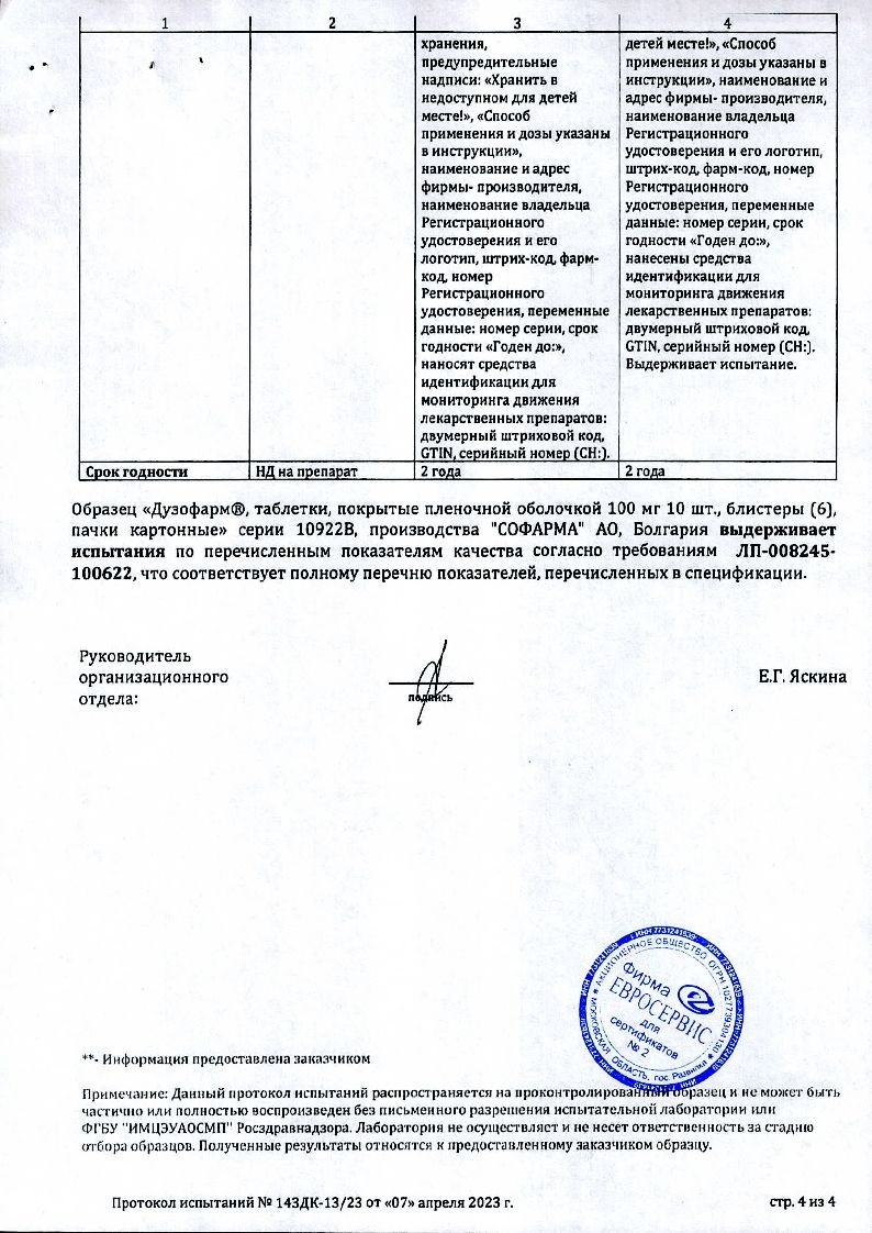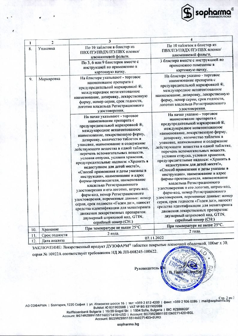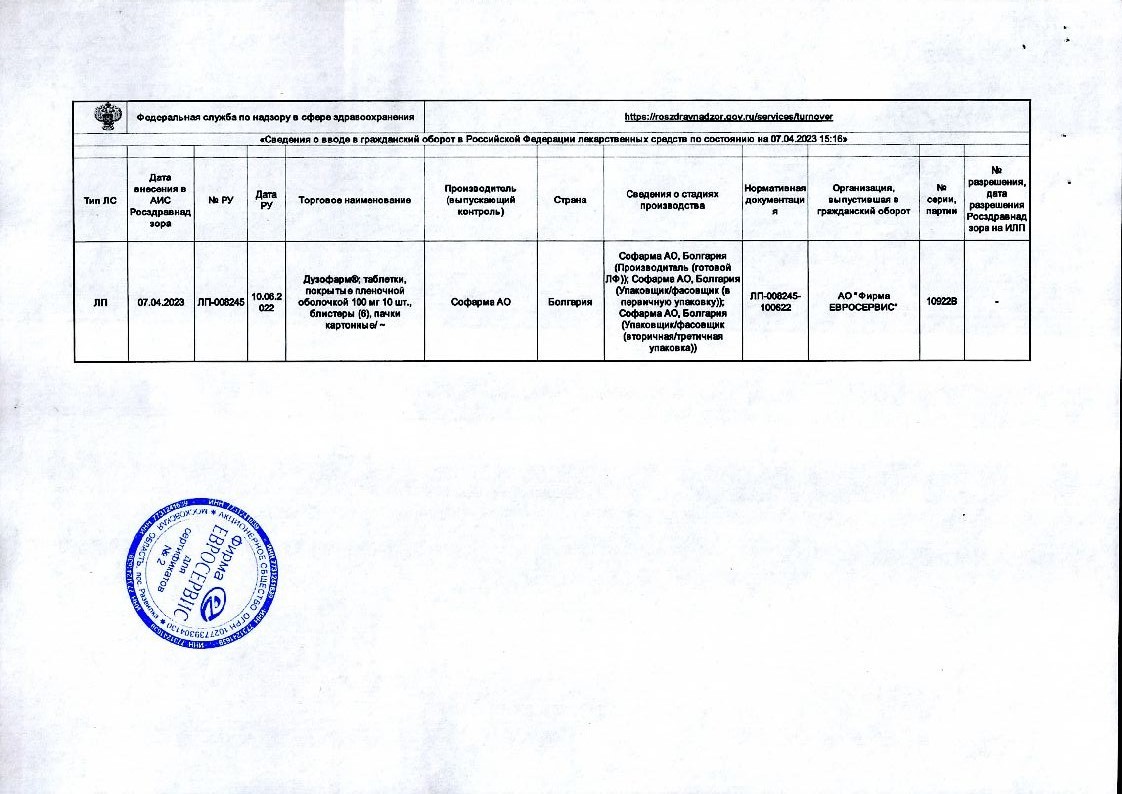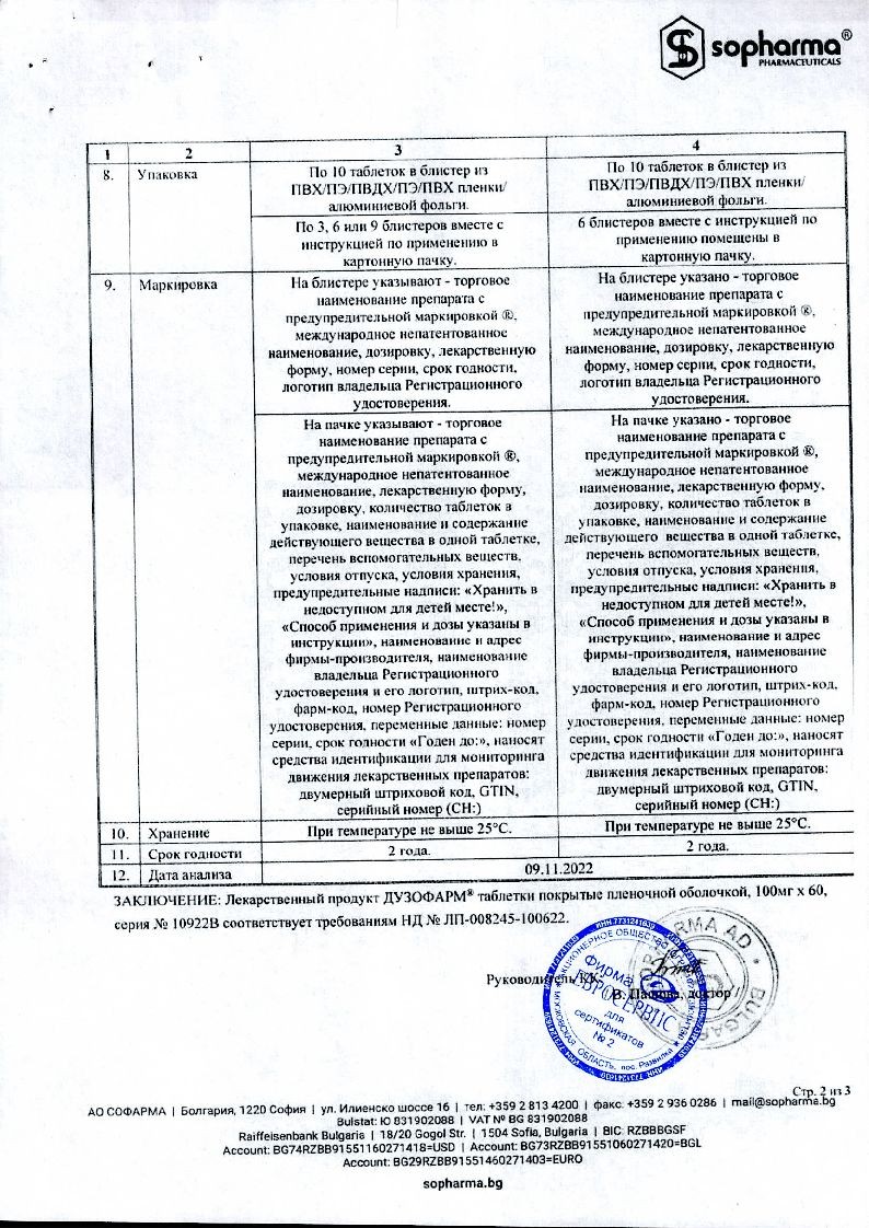 Купить: Дузофарм 50 мг 60 шт таблетки покрытые пленочной оболочкой