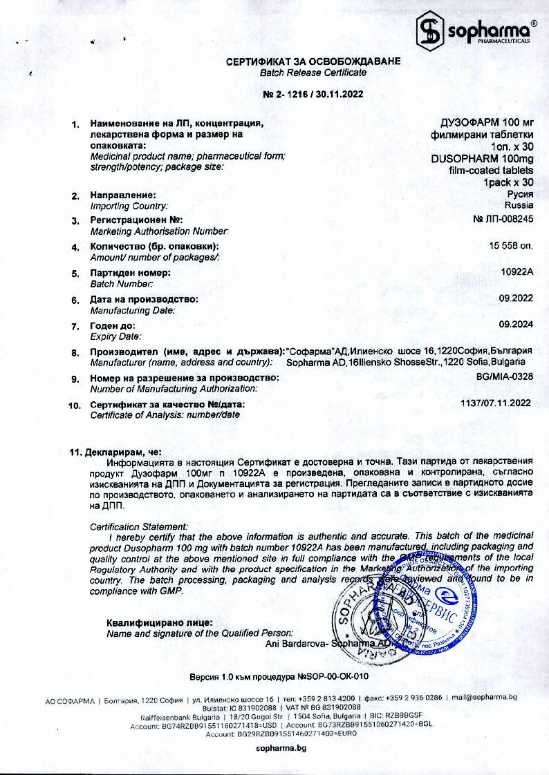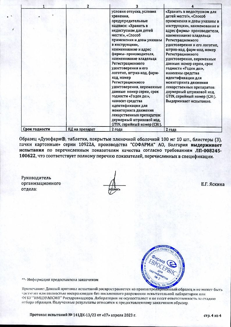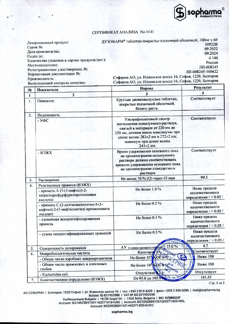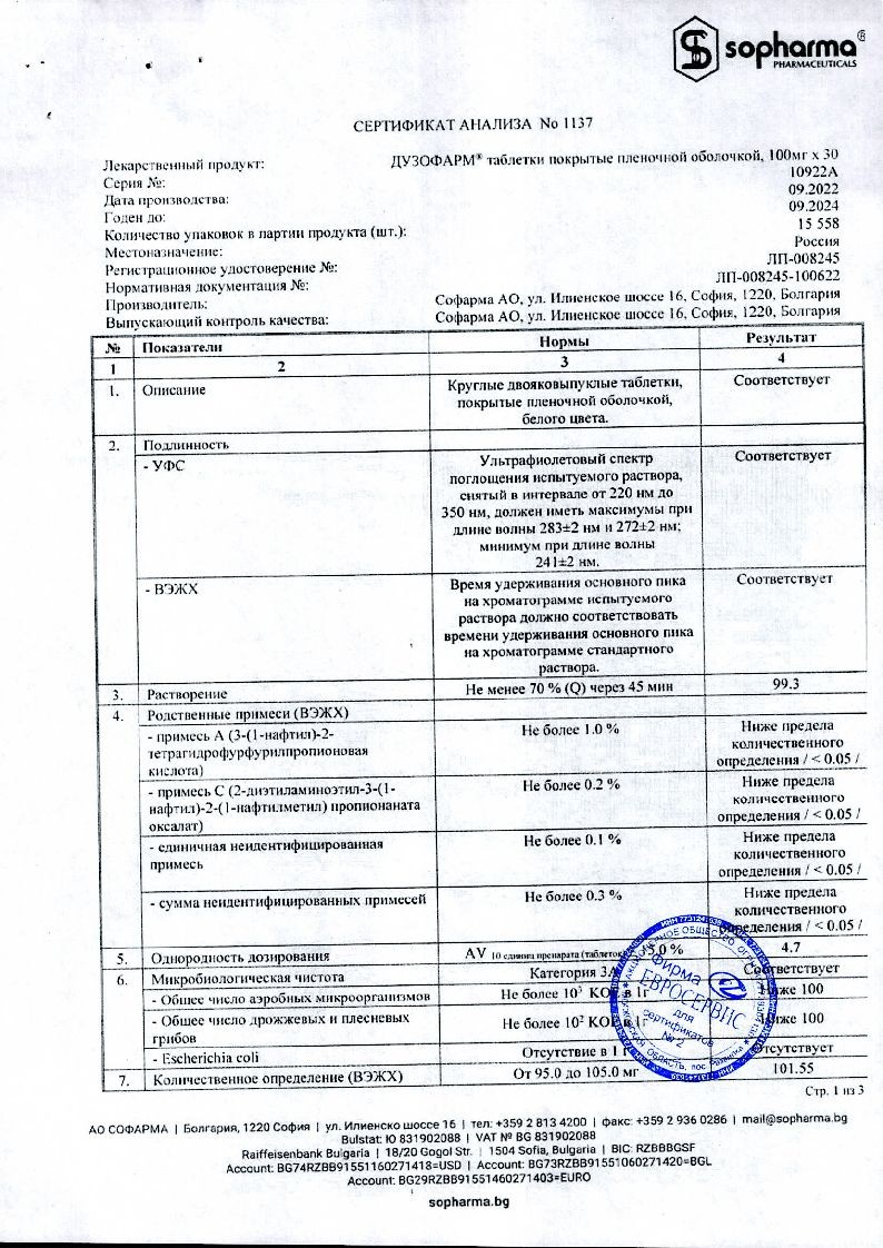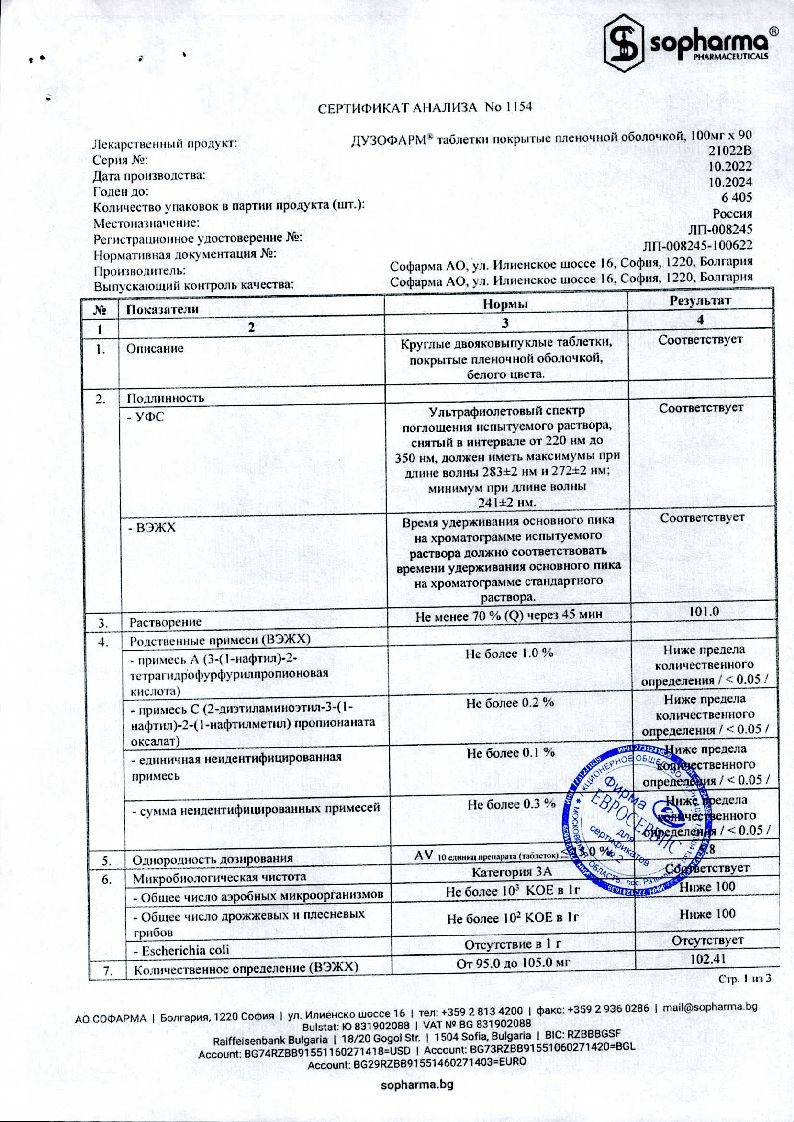 Купить: Дузофарм 50 мг 60 шт таблетки покрытые пленочной оболочкой