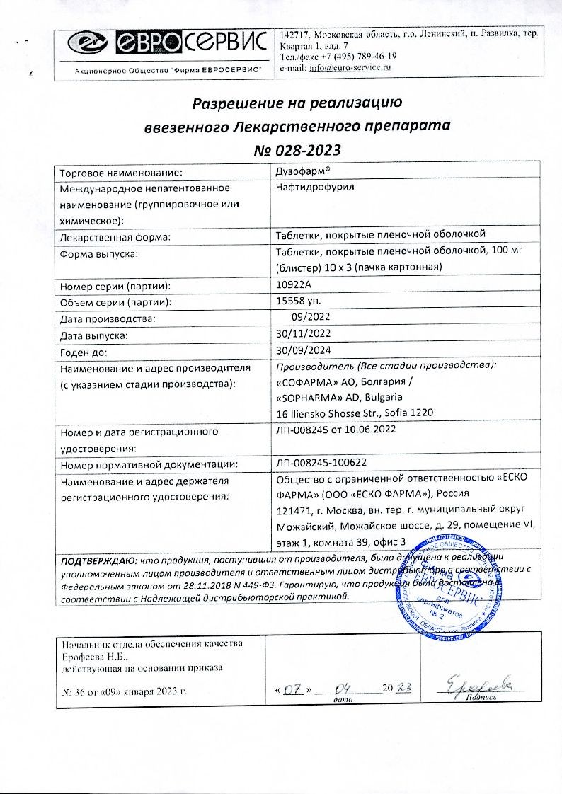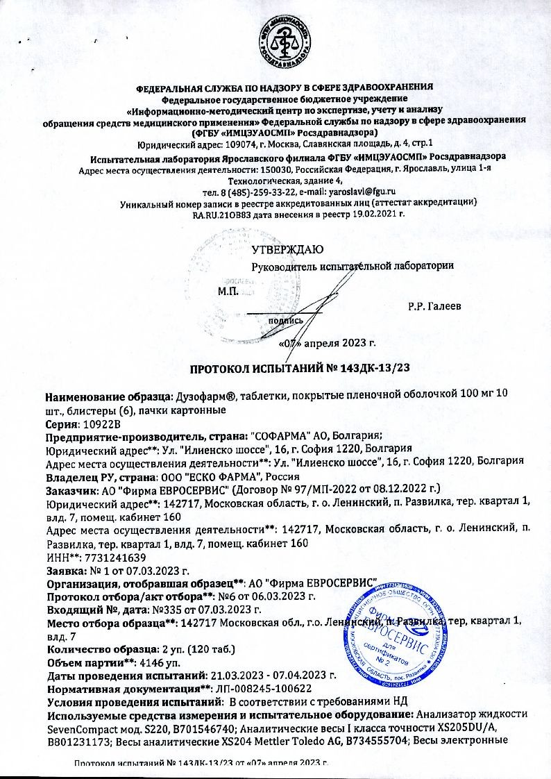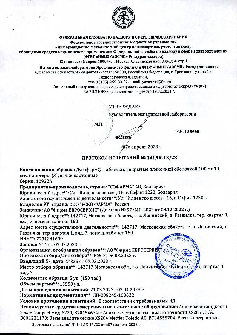 Дузофарм 50 мг 60 шт таблетки покрытые пленочной оболочкой