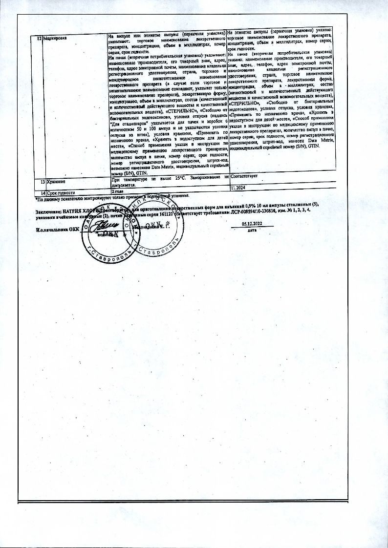 Натрия Хлорид 0,9 % 5 мл 10 шт раствор для инъекций ампулы