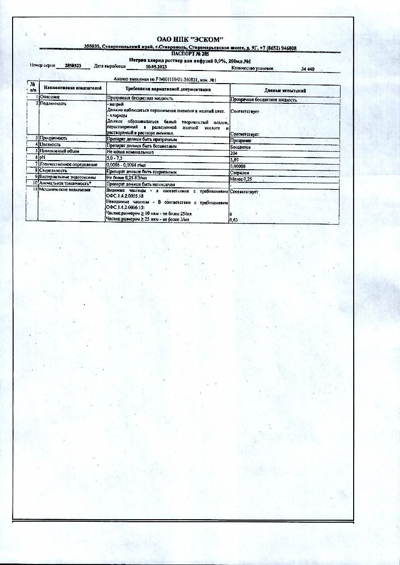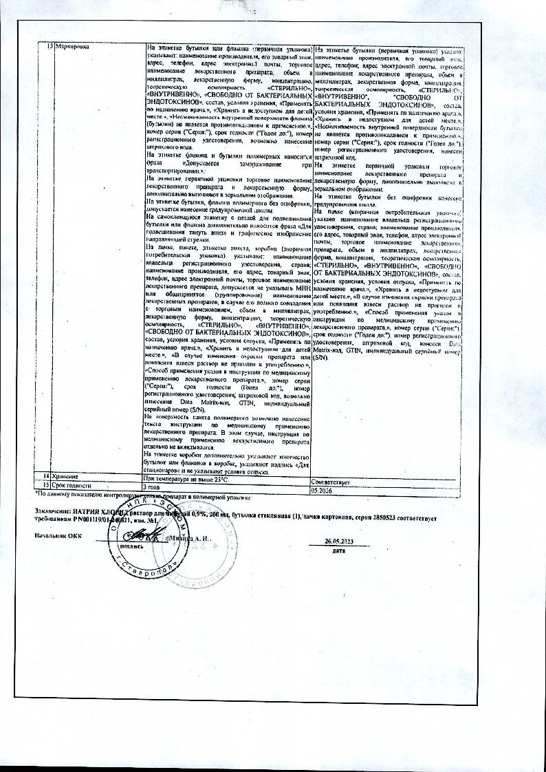 Натрия хлорид 0,9 % 500 мл раствор для инфузий бутылка стекло