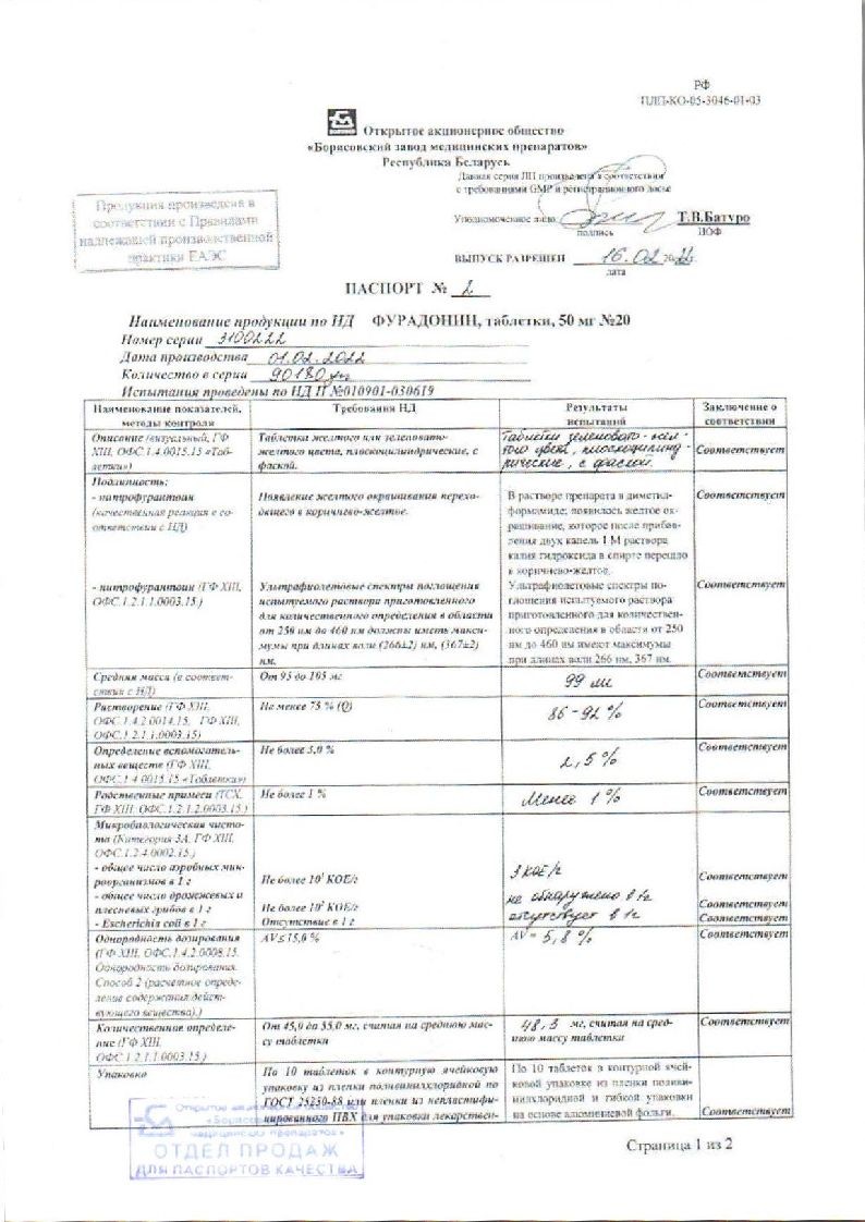 Купить: Фурадонин 50 мг 20 шт таблетки
