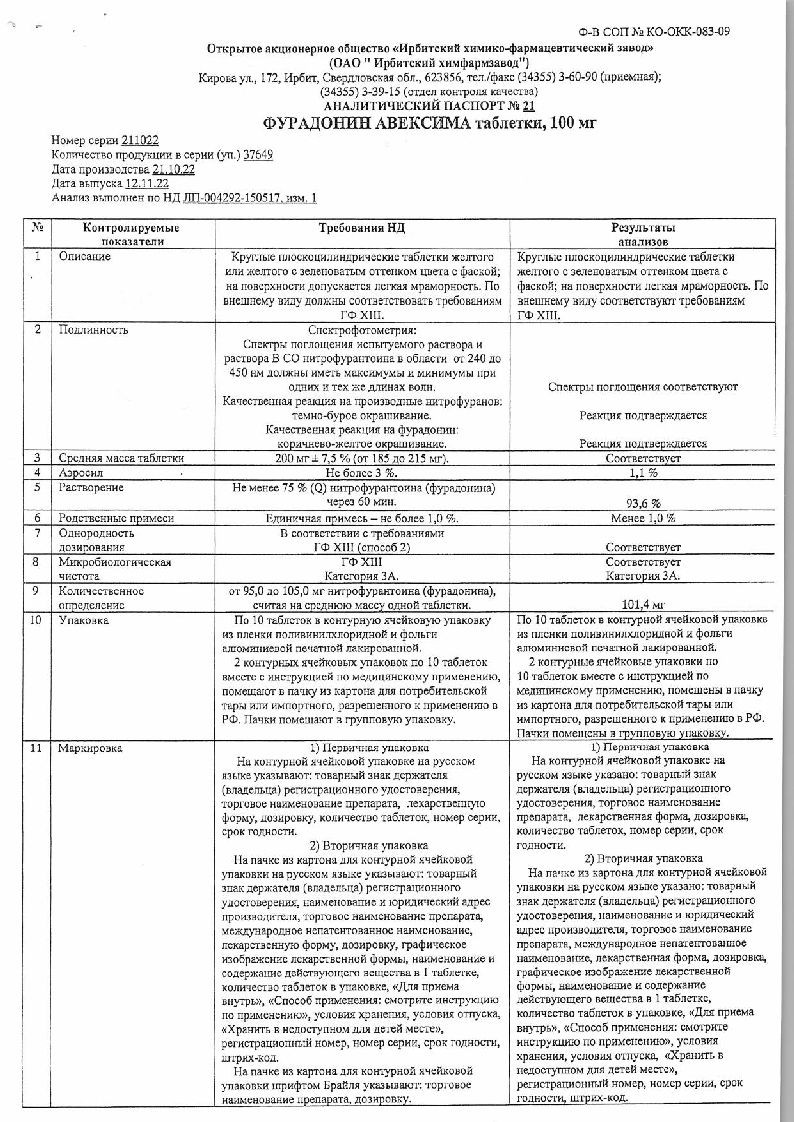 Купить: Фурадонин 100 мг 20 шт таблетки