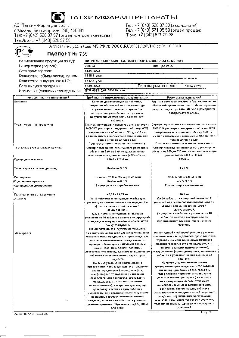 Нитроксолин 50 мг 50 шт таблетки покрытые оболочкой